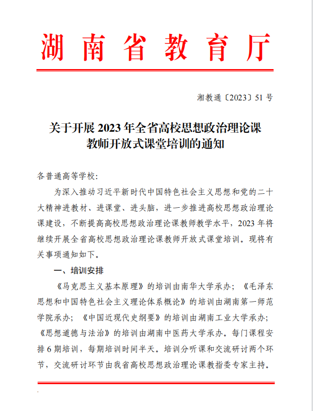 上一篇 :(转)关于举办2023年湖南省普通高等学校课程思政教学竞赛的通知