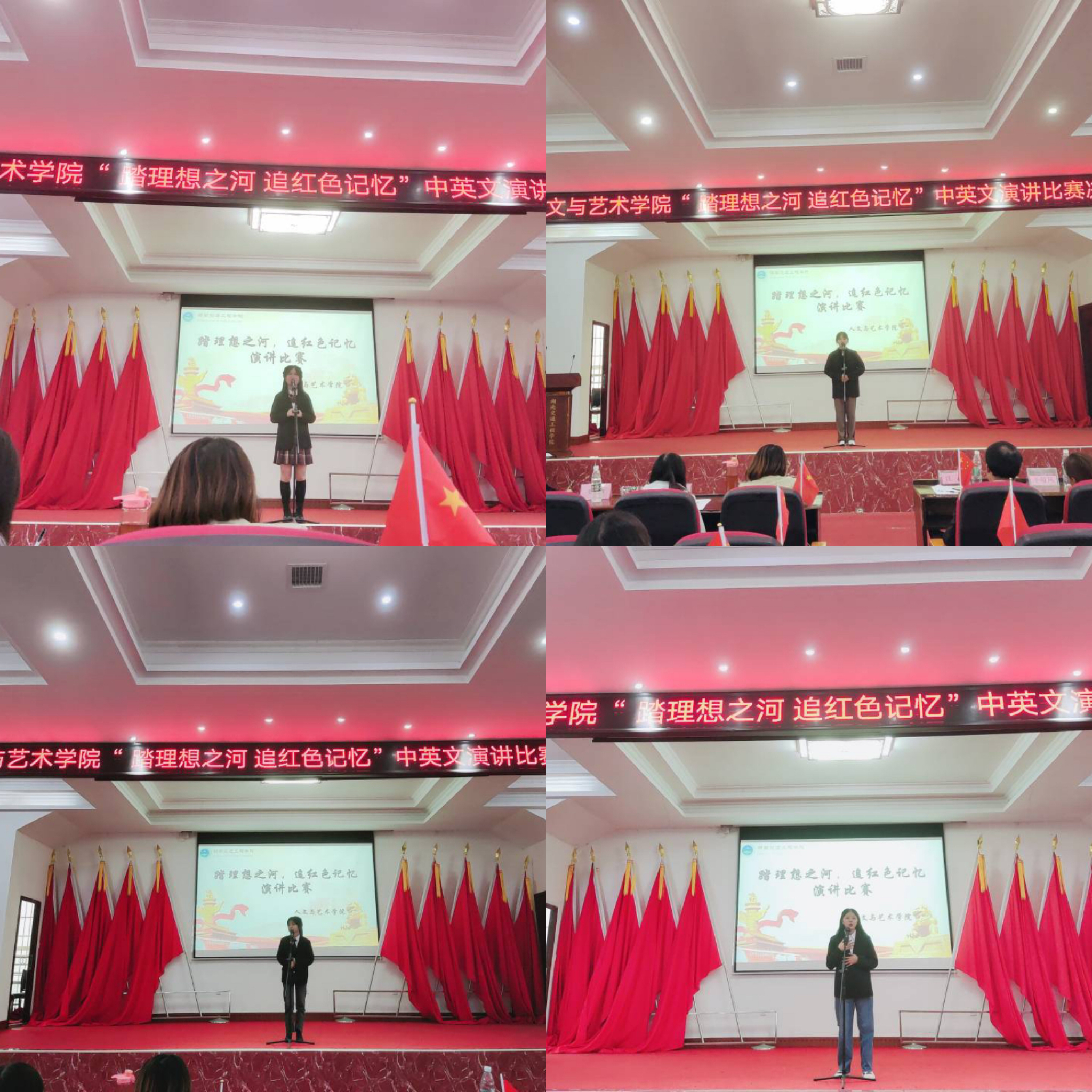 风雨砥砺,岁月如歌。为了激发我院大学生的爱国热情,发扬爱国主义精神,让大学生重温红色记忆,树立正确的理想信念。11月5日下午,人文与艺术学院在航母办公楼一楼会议室举办“踏理想之河,追红色记忆”中英文演讲比赛决赛。人文与艺术学院党总支书记沈飚、马克思主义学院党支部书记 、人文与艺术学院党总支副书记辛敬凤、人文与艺术学院副院长刘彪,辅导员周永、赵珊及300余名学生参加,管小六老师、刘佩老师、王芳老师、胡娜老师、龙晓芳老师担任比赛评委。