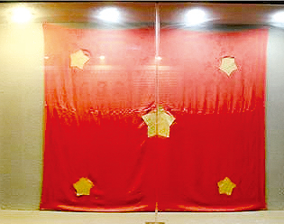 得到新中国成立的消息,在国民党监狱里的江竹筠(江姐)和狱友们凭想象缝制了一面五星红旗.