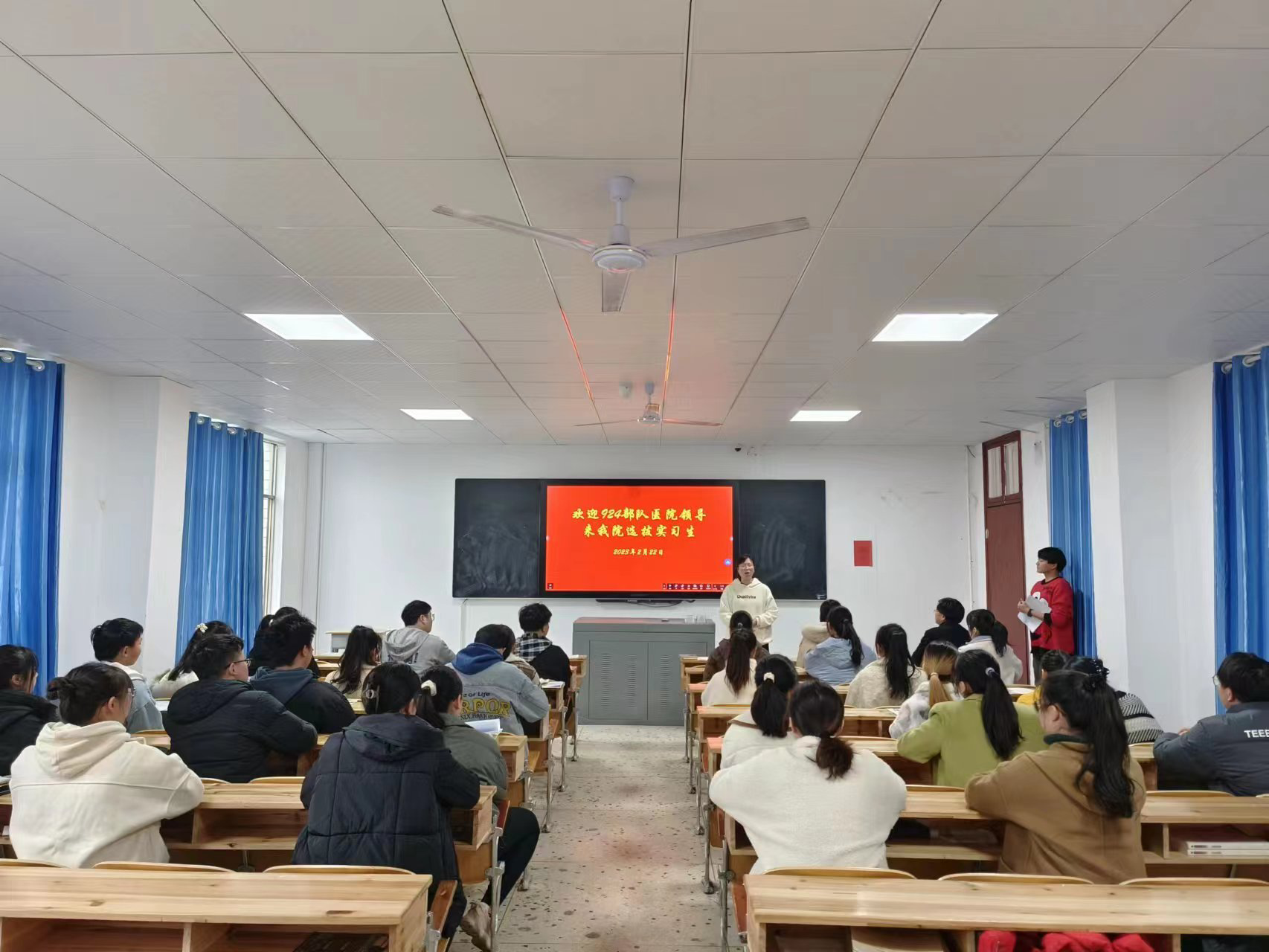 2023年2月22至23日,解放军联勤保障部队第924医院、长沙武警部队医院、南部战区总医院老师分别来我院进行实习生面试选拔工作。护理系20级本科及21级专科实习班级参加此次面试,医护学院院长陈熙、书记邓丽、实习专干老师万灵辉及各医院助理组织面试选拔。