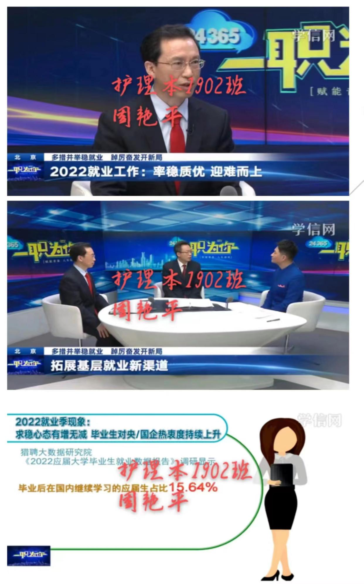 为了让老师和学生了解所学专业,挖掘同学们的大优势,明确同学们的定位,帮助best365官网大学生更好地从校园走向职场,做好充分的准备,从容应对求职难题,找到一条属于属于同学们自己的职业腾飞之路。2月5日,医学技术与护理学院组织全体师生于线上集中观看教育部“互联网+就业指导”公益直播课。本次直播的主讲专家是教育部高校学生司副司长吴爱华和西安交通大学常务副校长郑庆华。