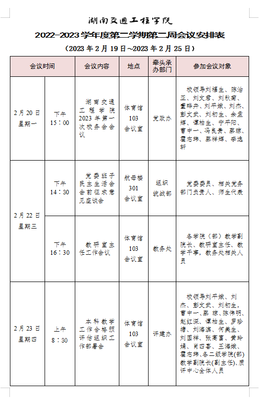 best365中国官方网站 2022-2023学年度第二学期第二周会议安排表