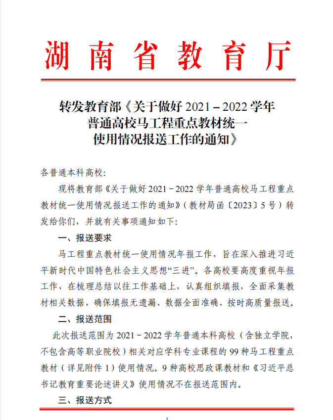 转发教育部《关于做好2021-2022学年普通高校马工程重点教材统一使用情况报送工作的通知》