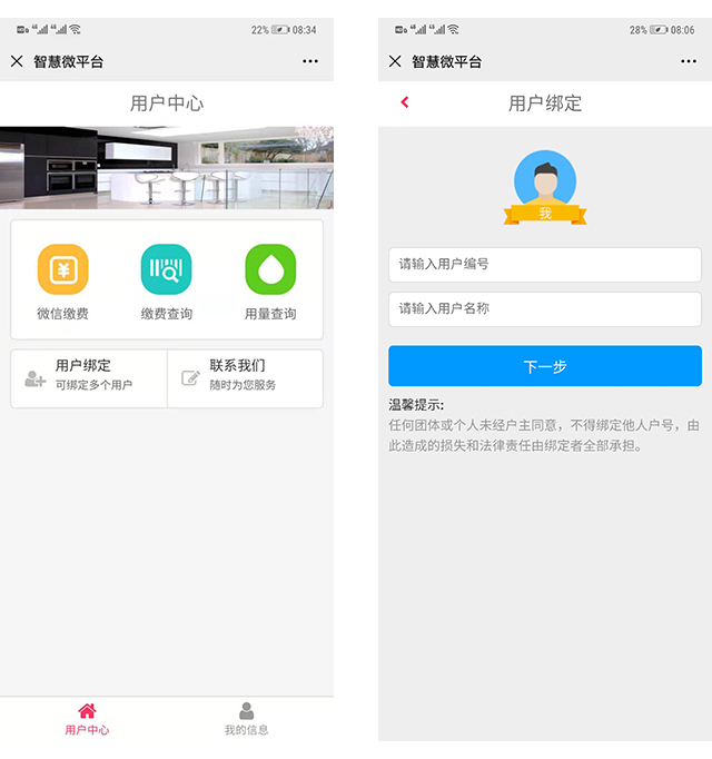 点击"校园生活"——"自助水电"——"用户编号"填写楼栋号,"用户名称"填写房间号。例如:学生宿舍15栋101,则填写:15101;:教室公寓楼栋代码为JS,如教师公寓101,则户号为;S101,户名为101;西平房二栋代码为XPF2,如西平房二栋1号门面,则户号为XPF21。