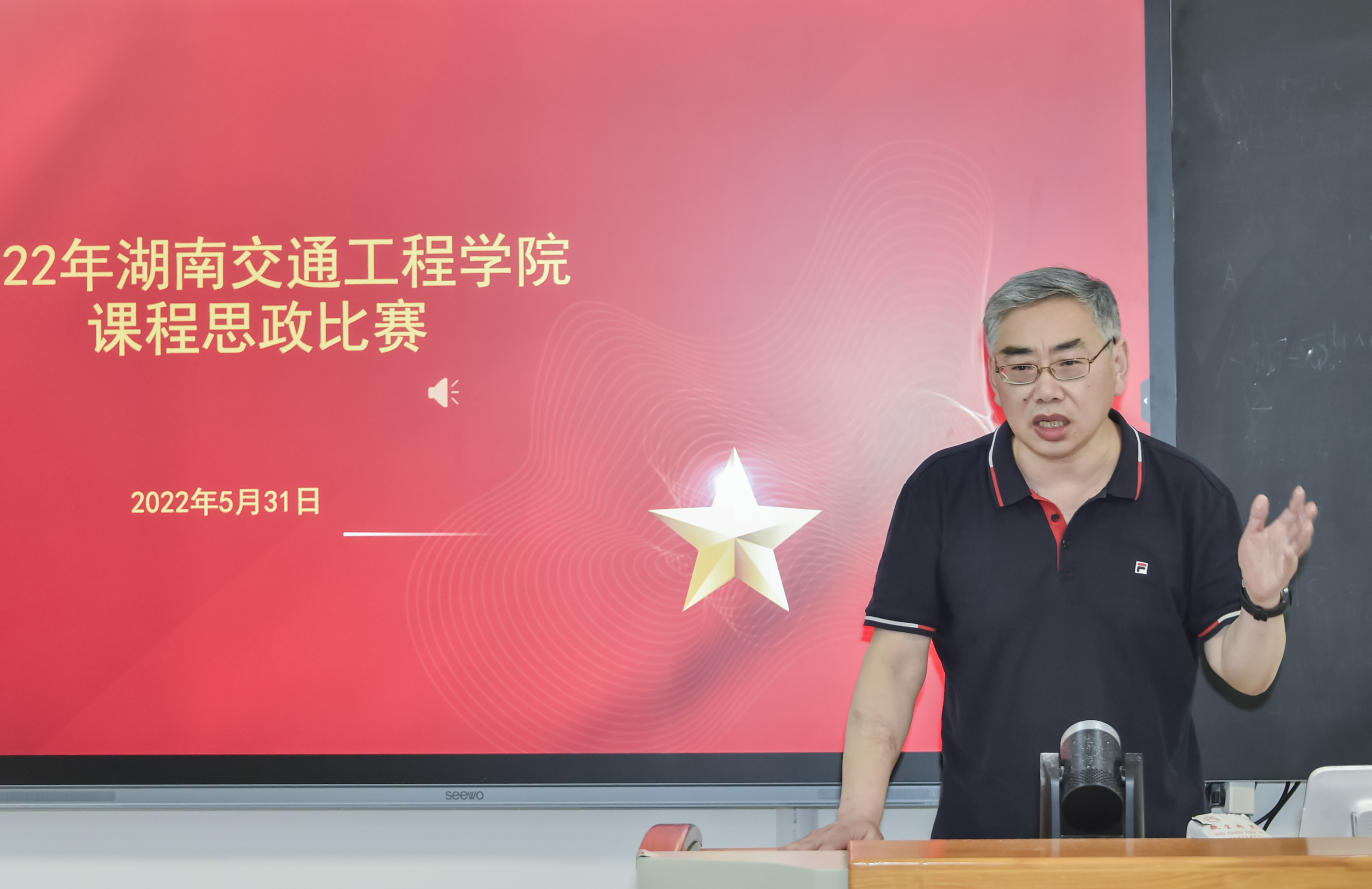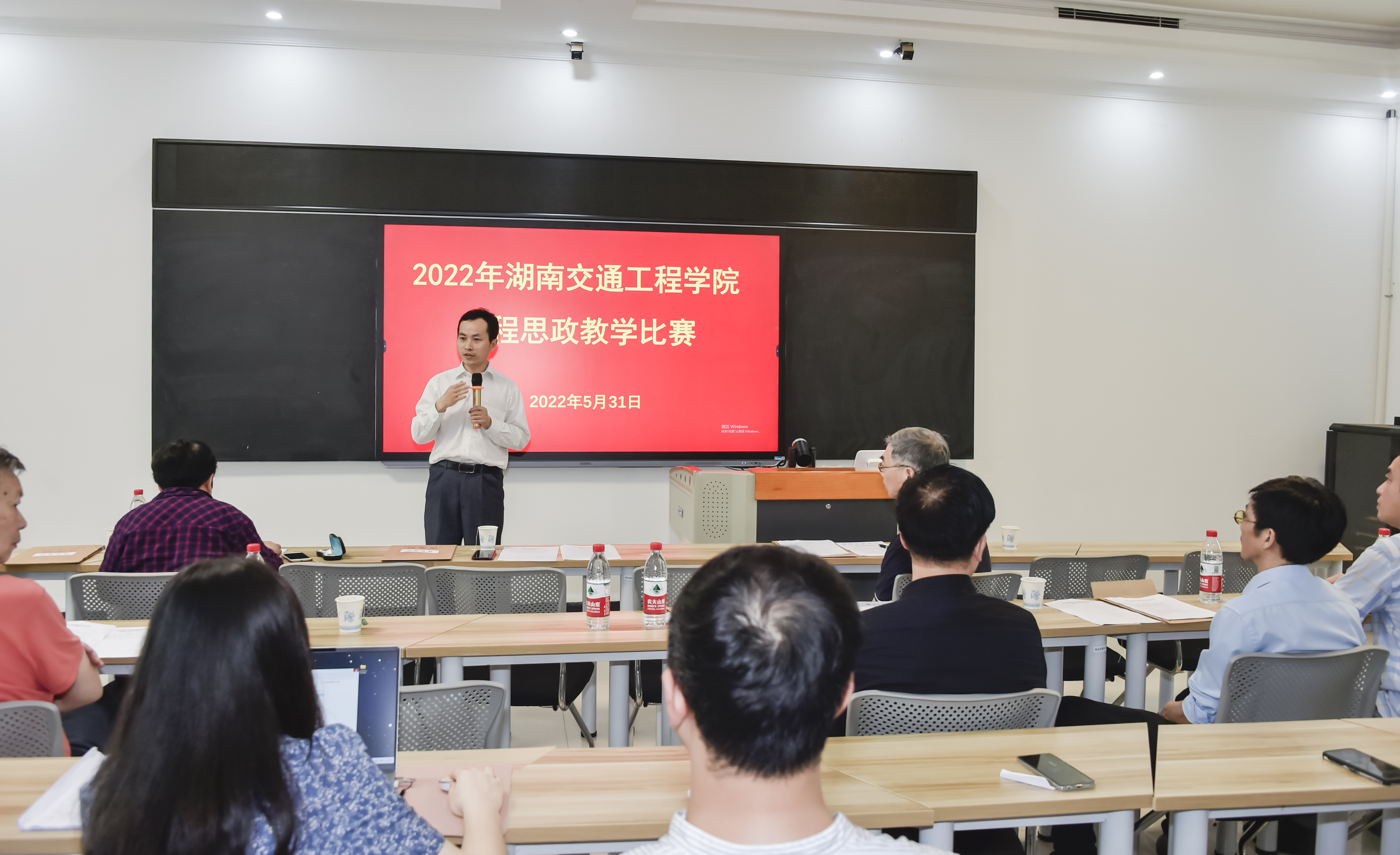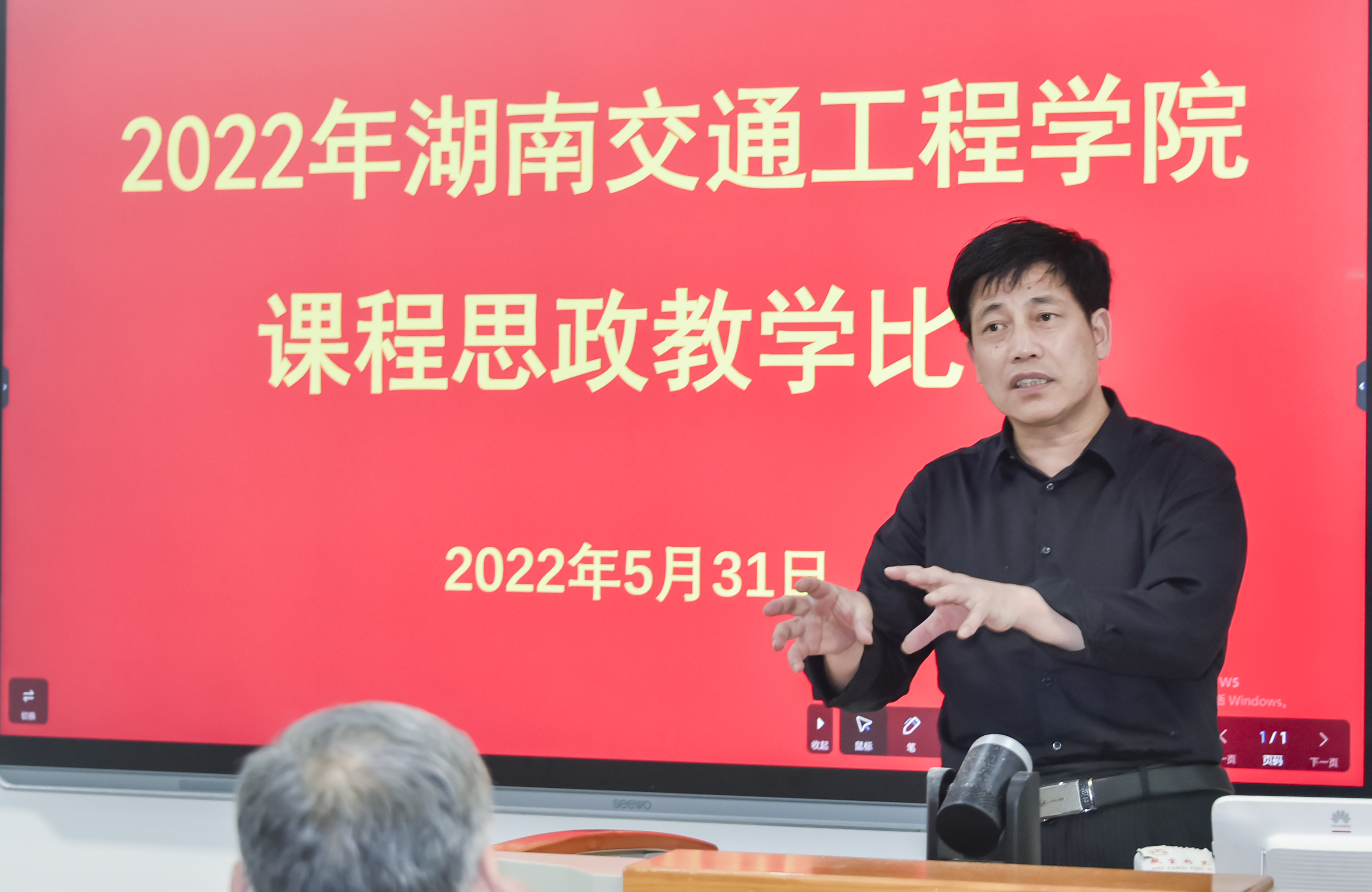 本网讯(通讯员 王海娥  记者  赵红深  摄影  李建华)为贯彻落实国家《关于深化新时代学校思想政治理论课改革创新的若干意见》和《高等学校课程思政建设指导纲要》文件精神,落实立德树人根本任务,高质量推进以“课程思政”为目标的课堂教学改革,使各类课程与思想政治理论课同向而行,全面提升best365官网教师课程思政教学能力,5月31日,学校在航母三楼教师发展中心举行2022年课程思政教学比赛决赛暨省级选拔赛。党委书记刘文君、名誉校长刘平娥、副校长樊晓平,教务处处长曹中一,副处长黄玲娟、王海娥,马克思主义学副院长沈飚、交通运输工程学院副院长涂宇、机电工程学院副院长杨启正、经济管理学院副院长王冰、人文与艺术学院副院长刘彪、教师发展中心副主任吴广平,副教授肖美玲、黄志萍担任特邀评委。比赛由党政办副主任霍志玮担任主持人。