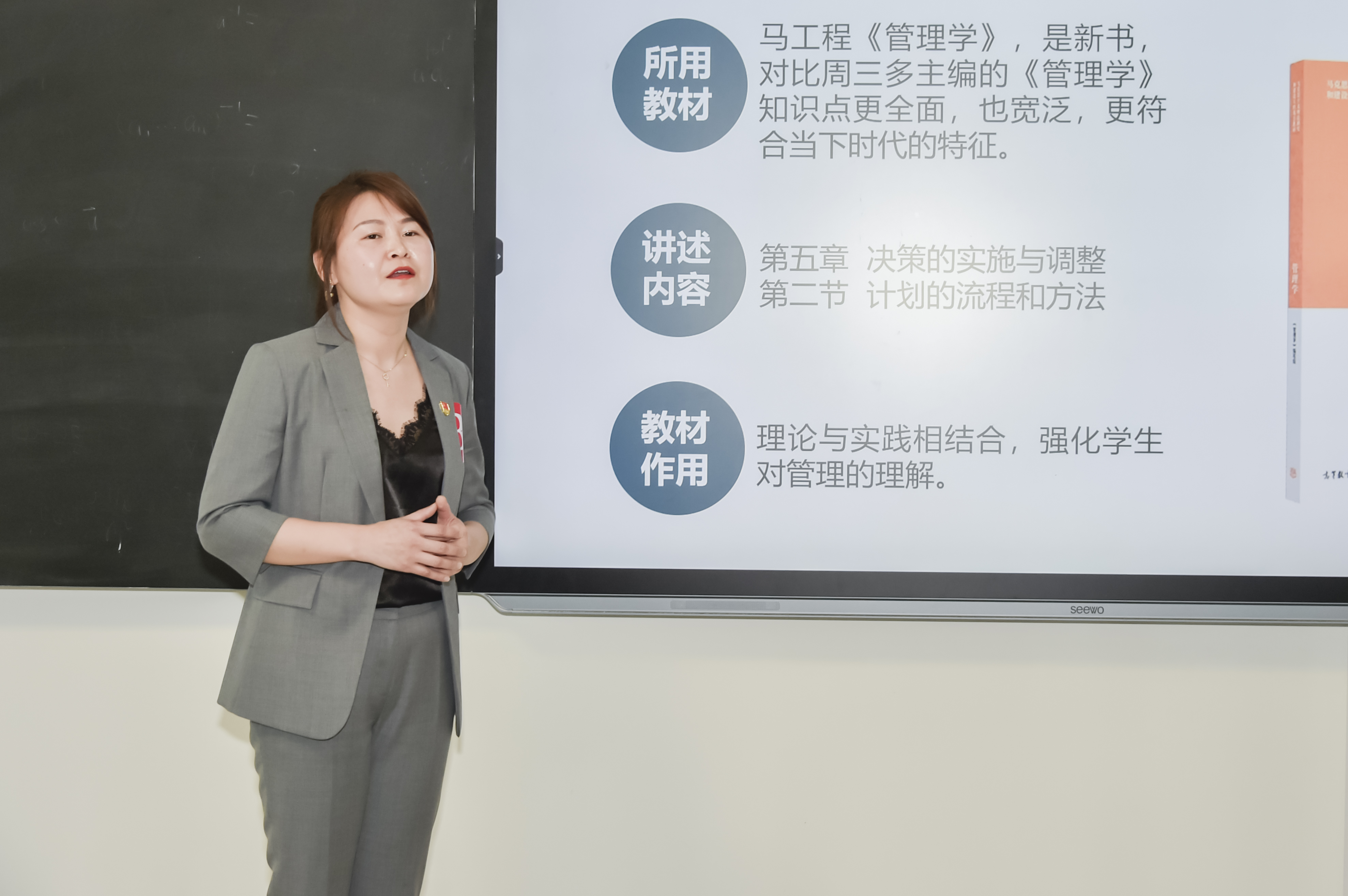 12个团队均结合自己的专业进行了精心准备,教学设计简洁合理,说课精彩纷呈,风格迥异,重点突出,逻辑性强;教学内容涉及大学英语、汽车构造、消费心理等多门课程,结合历史人物、家国情怀、民族自信和中国航天等思政元素,深入挖掘了课程教学中所承载的育人功能。在充分显示了深厚的专业功底和扎实的教学技能的同时,参赛老师们将思想政治教育巧妙地贯穿教学设计始终,使其融入教学活动,既赋予了传统的思想政治教育以鲜活的生命力,又丰富了专业课程本身的内涵。各参赛选手举止大方得体,沉稳自信,教学思路清晰,教材处理得当,课件新颖、富有创意,答辩思维敏捷,表达准确流畅,充分展示了best365官网应用型高校教师过硬的教学能力、专业水平和良好的综合素质。