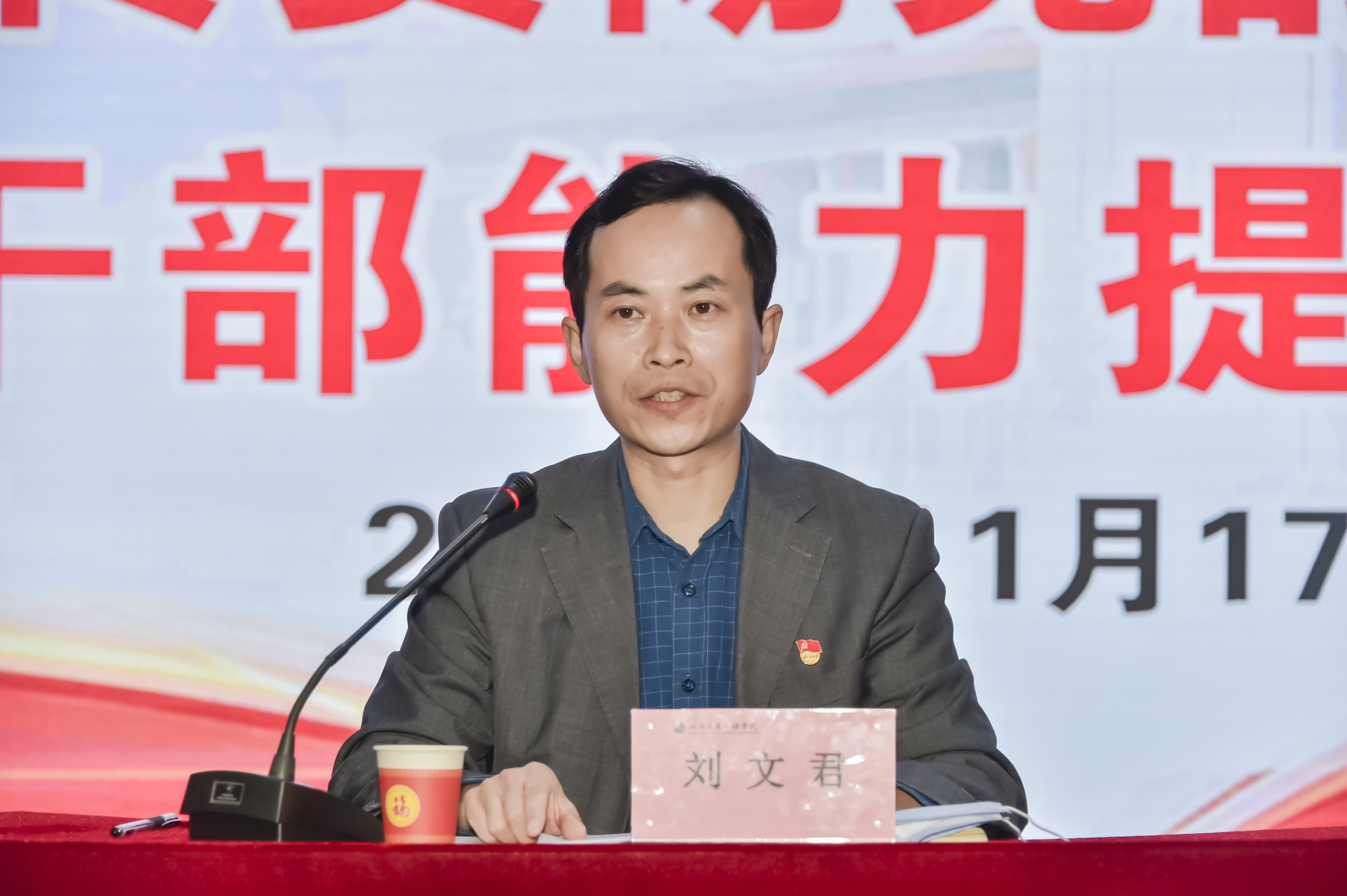 刘文君在开班动员讲话时指出,在全党全国深入学习宣传贯彻党的二十大精神之际,学校举办学习贯彻党的二十大精神党务干部能力提升培训班,目的是通过抓住党员干部这个“关键少数”,示范带动各级党组织和广大党员以及全体师生入心入脑全面学习、完整准确全面把握、真抓实干全面落实,改进作风、提升能力,凝聚人心、坚定信心,落实好评估工作的各项任务,始终高举旗帜奋进新征程、紧跟核心夺取新胜利,走好实现第二个百年奋斗目标新的赶考之路。