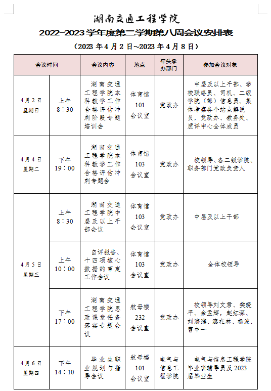 best365中国官方网站2022-2023学年度第二学期第八周会议安排表