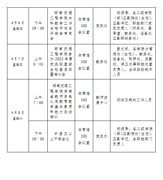 best365中国官方网站2022-2023学年度第二学期第七周会议安排表