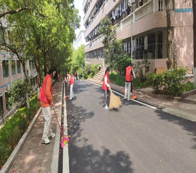 同学们清扫公共区域