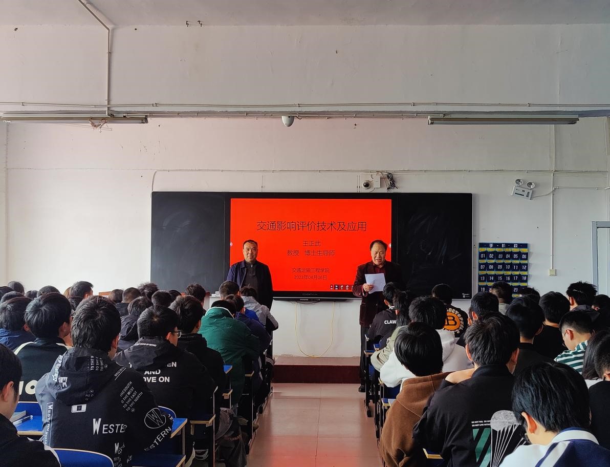 讲座主要从交通影响评价的背景、交通影响评价的目的和意义、相关依据、研究内容、知识储备、案例展示等方面进行讲授。王教授讲座思路清晰,环节紧凑,重难点突出,设计合理。短暂的一个半小时,给同学们留下了深刻的印象,成功激发了学生们的学习热情,赢得了同学们多次热烈的掌声。