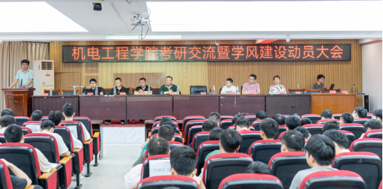 为进一步加强我院学风建设,增强我院学生的考研积极性及备考科学性,明确考研目标,把握考研政策,科学掌握备考方法,聚焦解决考研学生的“茫”与“惑”,以考研工作为抓手促进学风建设,搭建学生交流学习的有效平台,彰显学生朋辈之间的情怀与传承,机电工程学院于2023年4月19日晚上7点在体育馆101会议室举办“2023年考研交流暨学风建设动员大会”。8名2023届考研拟成功录取的2019级学生以及2020级全体学生、其他年级部分有考研规划的学生出席了本次考研交流暨学风建设动员会。院长吴义虎教授、党总支书记罗斐教授、教研室主任贺沅玮副教授、吴辉副教授以及全体辅导员老师参加会议。