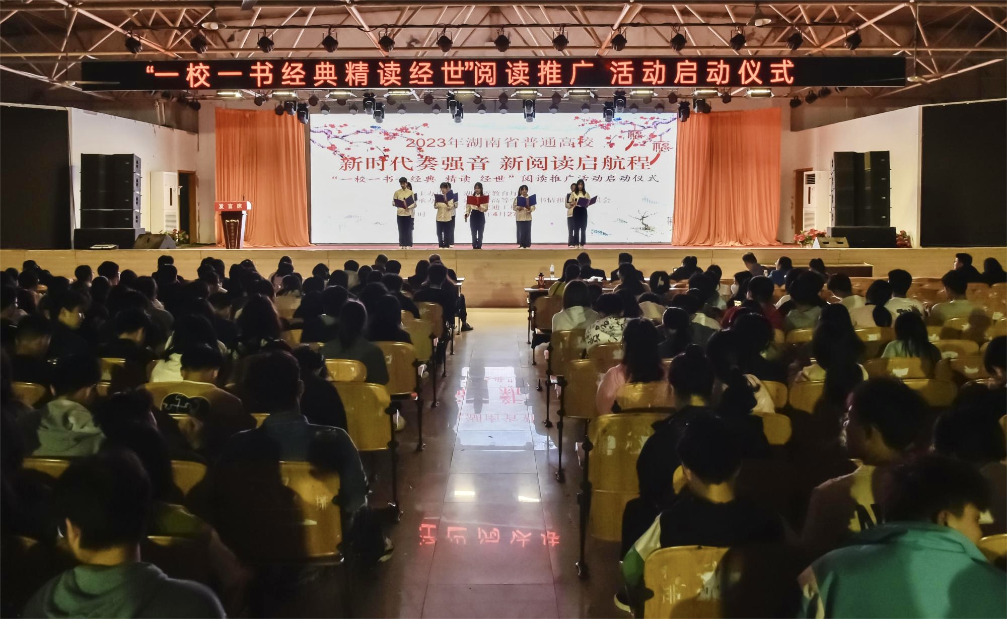本网讯(记者 赵红深 摄影 李建华)根据湖南省教育厅《关于做好2023年全省普通本科高校“一校一书——经典、精读、经世”阅读推广活动的通知》要求,best365官网2023年“一校一书——经典、精读、经世”阅读推广活动已于4月正式启动。4月27日晚,学校在大学生活动中心举行2023年“一校一书”阅读推广活动启动仪式,党委副书记李先聪到会并致辞,副校长余孟辉宣读学校2022年“一校一书”阅读推广活动表彰文件。各二级学院党总支书记、副书记、学生支部书记,党务部门负责人,图书馆全体成员,全体辅导员,团学干部代表、优秀学生代表近2000人参加活动。校团委书记漆在林主持。
