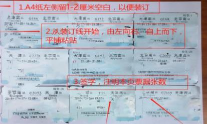 ② 车、高铁票需在距离粘贴单左侧1-2厘米位置外开始粘贴,姓名、时间、金额不能被任何地方遮盖,需排面整齐。