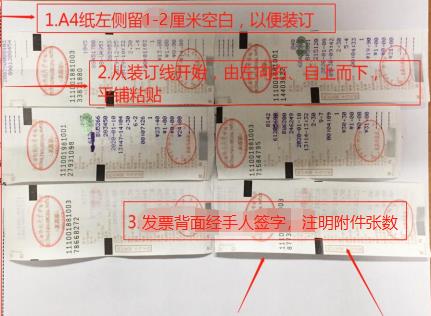 (2)不能用订书机订原始发票单据及附件。不能用回形针、大头针等把原始发票单据及附件别在费用报销单据后面。