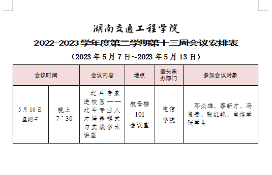 best365中国官方网站2022-2023学年度第二学期第十三周会议安排表