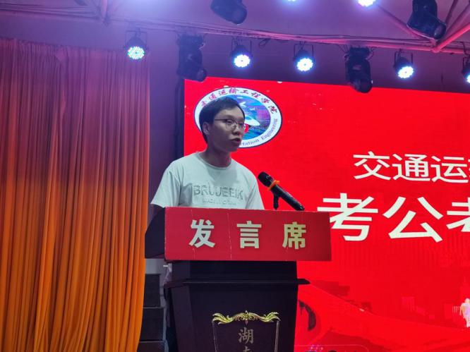 2023届考研的学生代表萧骞同学在发言中讲述他的考研上岸经验,学习要持之以恒,及时巩固学习知识,特别是英语需要一个长期积累的过程;鼓励鼓励学弟学妹们要敢于追梦,敢于拼搏,让青春无悔,不负时代,不负韶华。