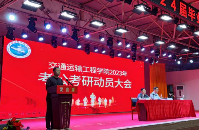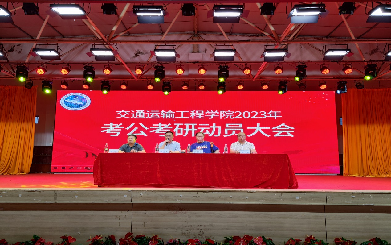 2023年5月17日19:00,交通运输工程学院在大学生活动中心举行 “2023年考公考研工作动员大会”,院长罗迎社、党总支书记何美生、副院长涂宇、党总支副书记何文华莅临会议,全体2020级本科生、辅导员、专任教师近600人参加会议。会议由副院长涂宇主持。