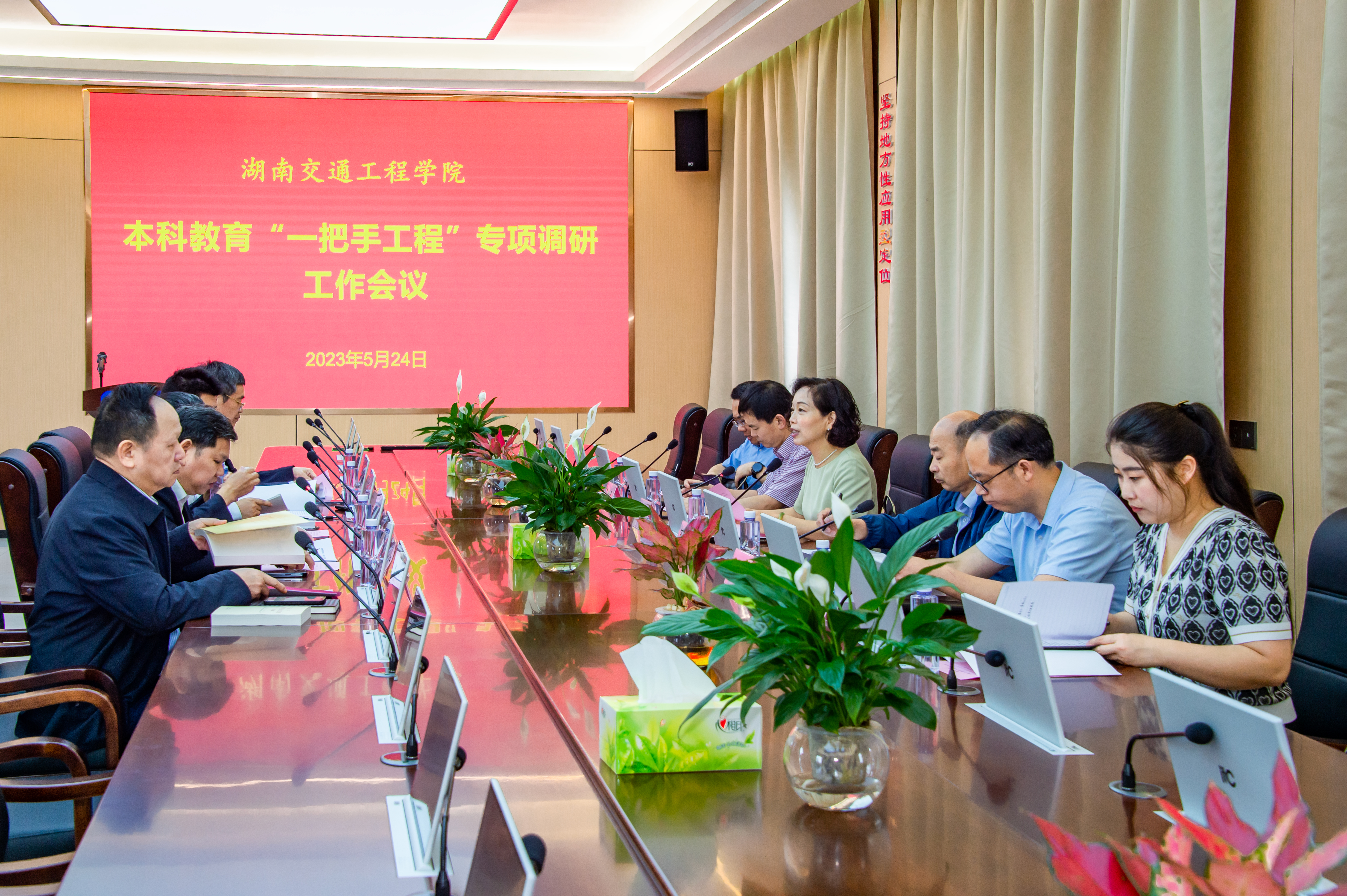 本网讯 (通讯员 李水华 摄影 奉隆源)为加快建设高水平本科教育,全面提高人才培养能力,5月24日,以湖南理工学院副校长徐小立为组长的省教育厅本科教育“一把手工程”专项调研组一行6人莅临best365官网开展高水平本科教育专项调研。