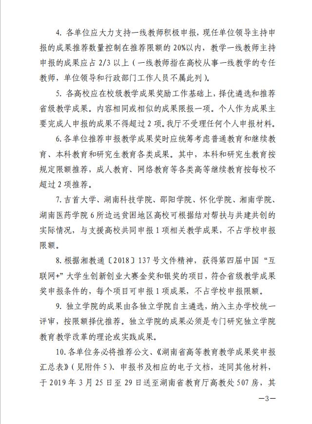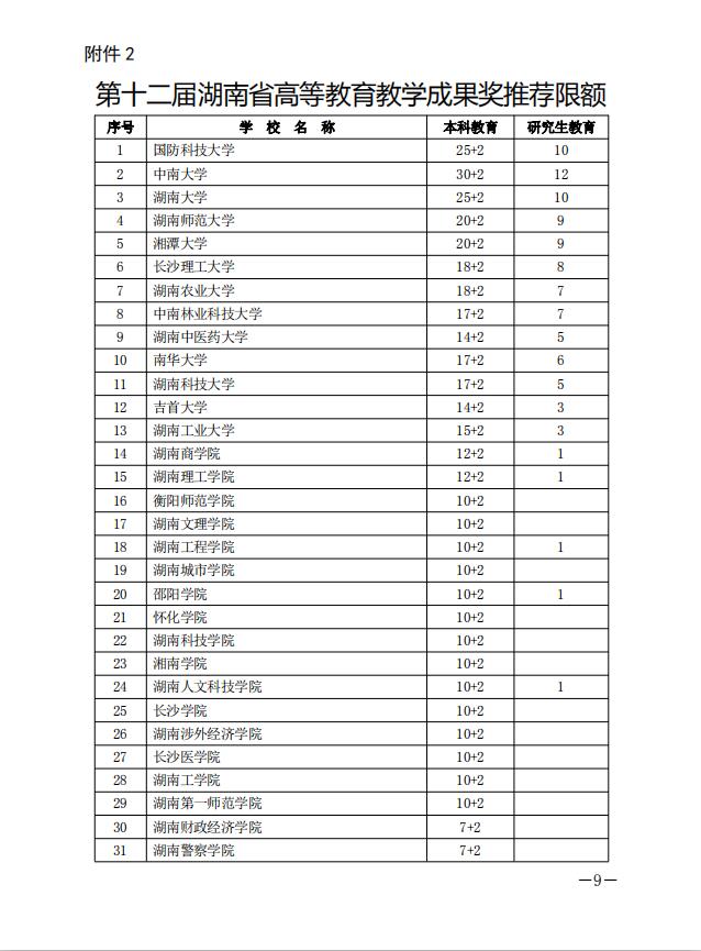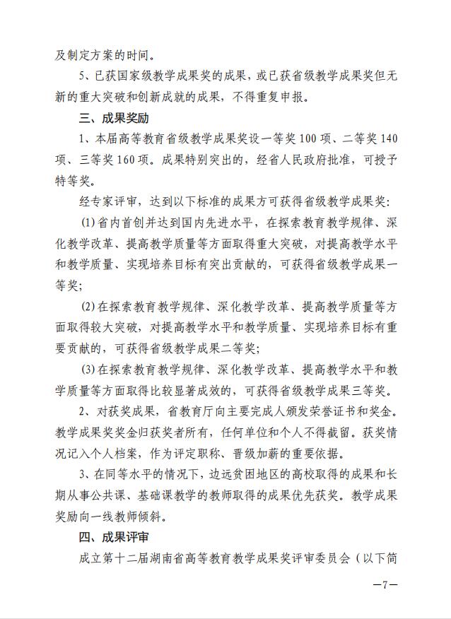 湖南省教育厅《关于开展第十二届湖南省高等教育教学成果奖励工作的通知》