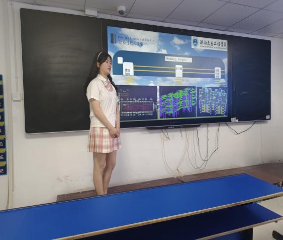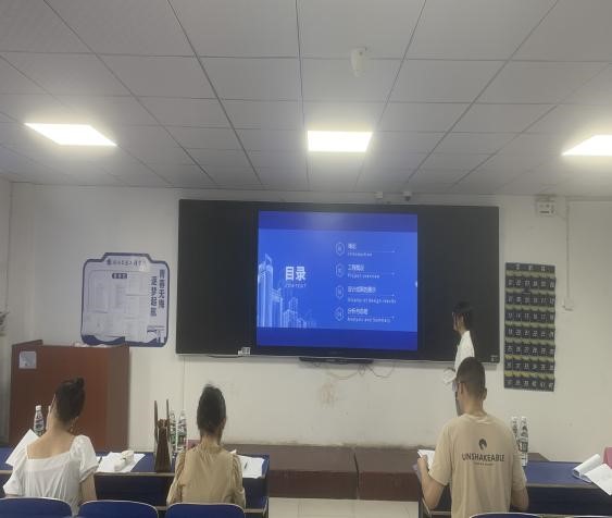 答辩中,学生从选题背景、主要工作、主要结论等方面进行汇报,答辩评委针对成果提出问题,并根据学生的成果质量和回答情况评定分数。