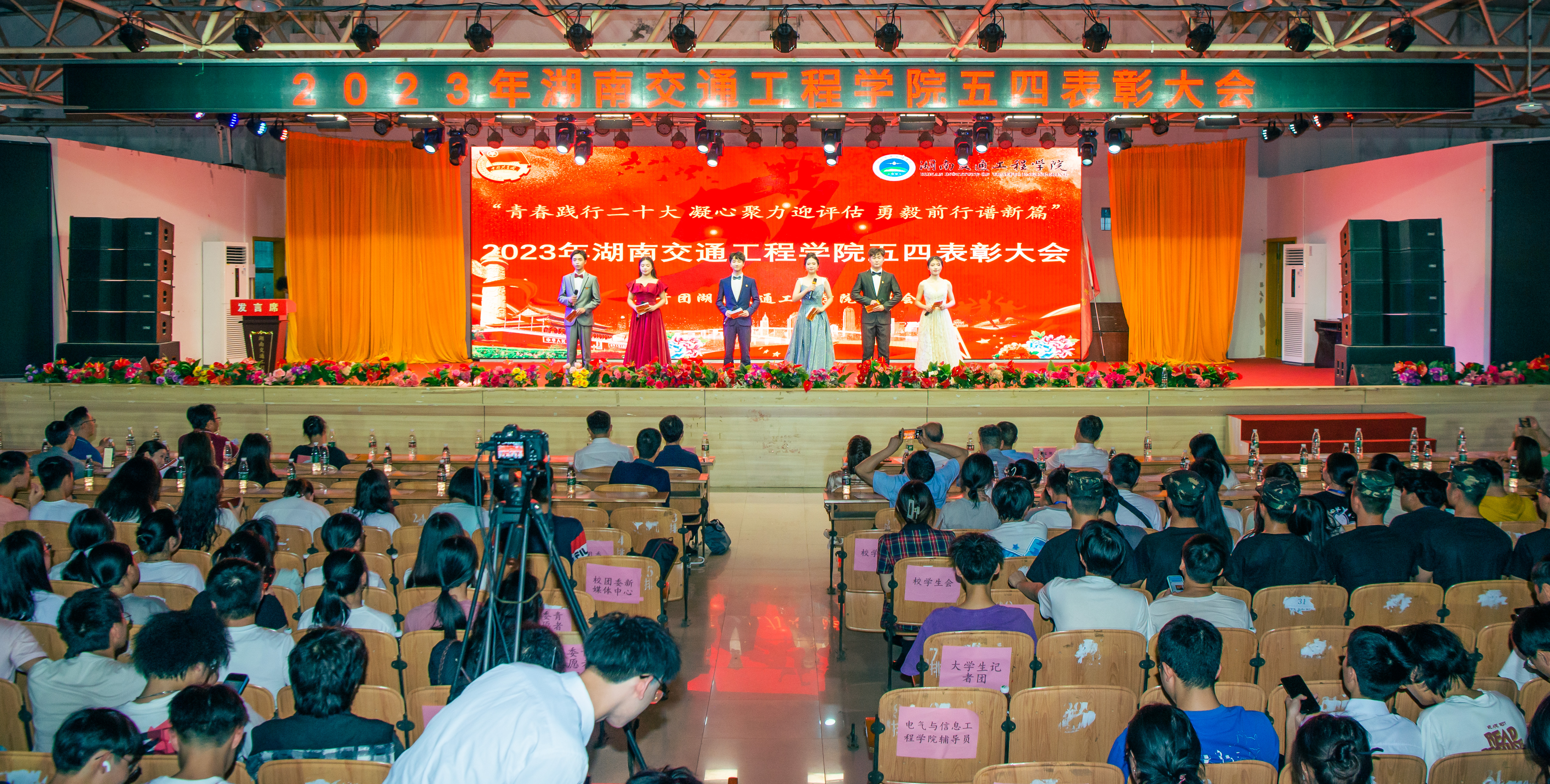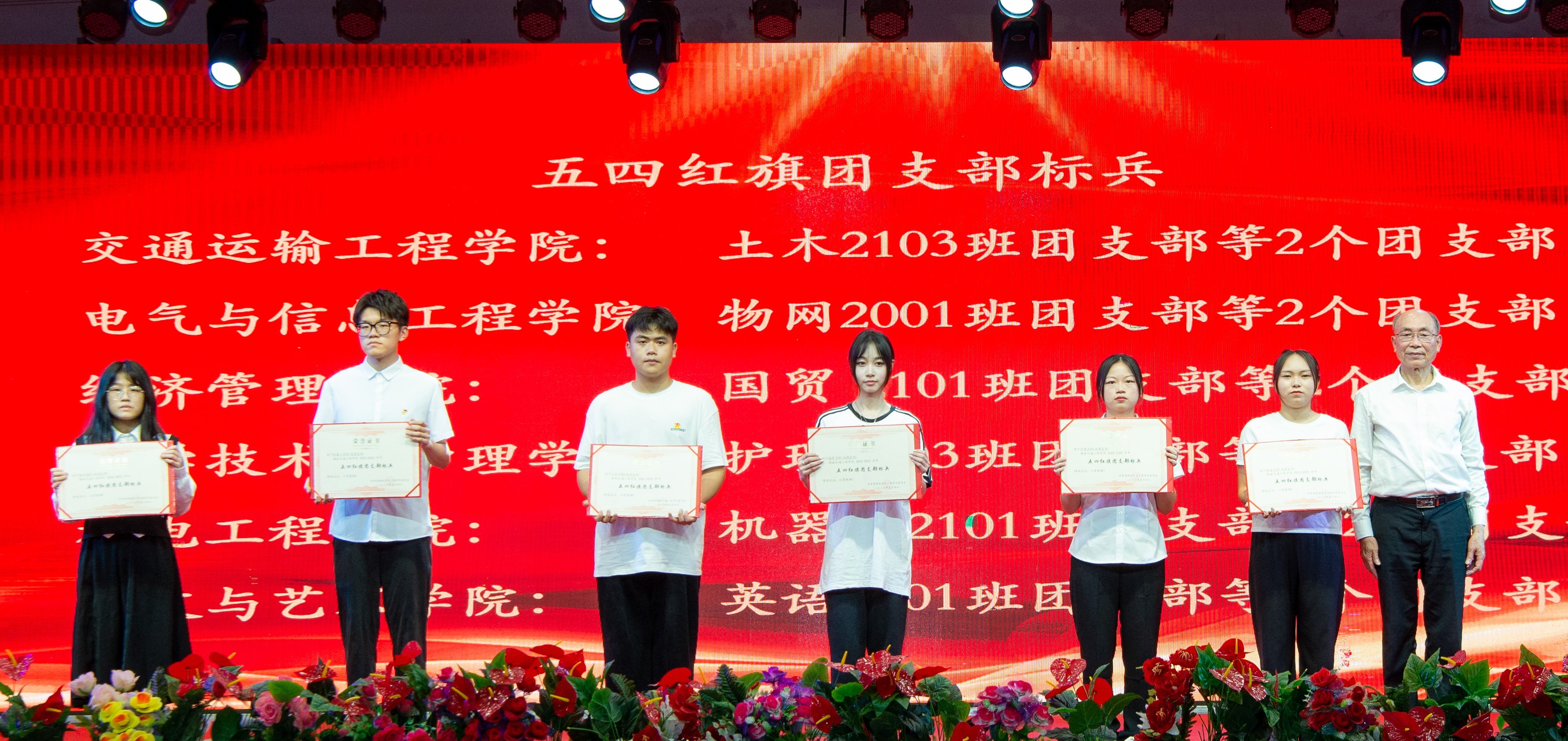 晚会分为 “致青春,致未来,奋斗的青春”“加强组织建设,筑牢坚强战斗堡垒”“汲取榜样力量,发挥先锋模范作用”“社团涌聚风采,青春激扬时代旋律”“有幸遇良师,青春路繁花”“怀着感恩之心,励志前行”“团学干部作表率,决胜合格评估”等七个篇章。节目精彩纷呈现场气氛热烈。其间,与会领导分批穿插为获得表彰的先进集体和个人代表颁奖。