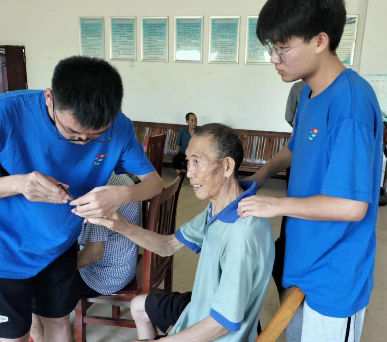在宝盖镇各级党组织的支持下,志愿者进入老百姓家中老百姓进行亲切交谈开展血压量、艾灸按摩等医疗卫生服务和卫生清扫、生活用品整理等志愿服务,并根据每位老人的身体状况提出对应的小建议宣传健康小常识。此外,团队成员还指导村民安装“湘易办APP”,让村民随时了解湖南新举措、政策。老百姓满脸笑容感谢志愿者们贴心而真诚的服务,志愿者们能将所学知识运用到实践中感到欣慰。