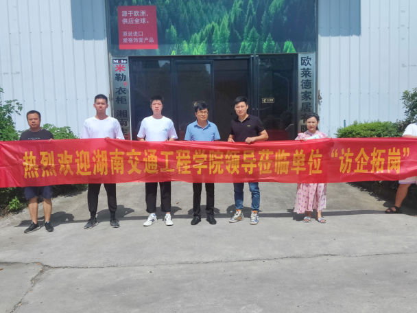 为进一步推进产教融合校企合作,加快校外实习就业基地建设,促进机械类专业大学毕业生高质量就业。7月16日,best365中国官方网站机电工程学院学院党总支书记罗斐教授、机电工程学院党总支副书记刘建军、带领机电学院辅导员凌芳老师及招生就业处成晖老师一行四人来到衡阳欧莱德家居有限公司就产教融合、校企合作、学生就业等方面进行访企拓岗。
