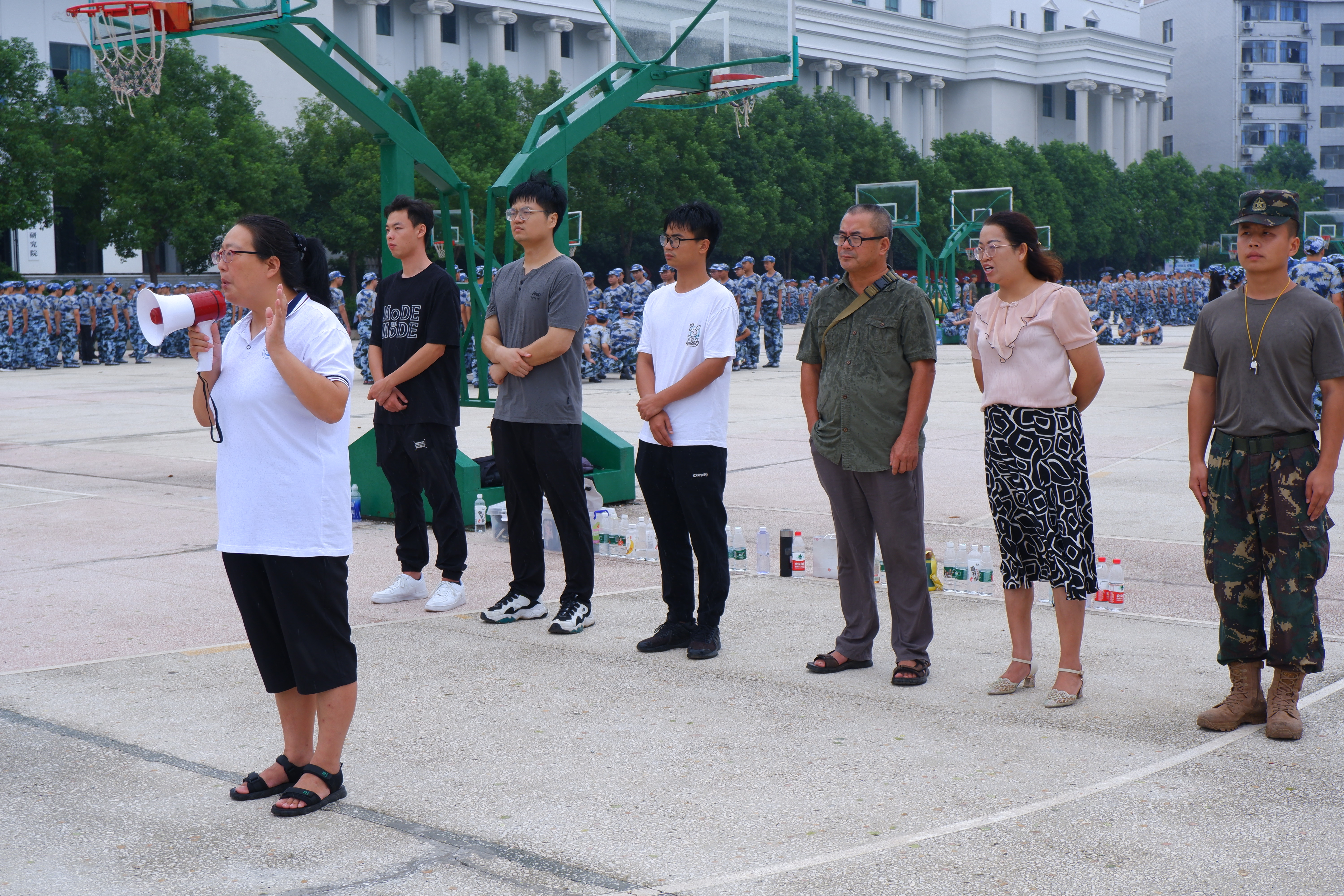 本网讯(通讯员 赵孝锶 )为了培养吃苦耐劳精神强化大学生的纪律性和锤炼抗压的综合素质,经济管理学院9月3日上午在篮球场隆重举行2023级新生军训动员大会,为即将开展的军事技能训练教学活动进行动员。出席本次大会的领导有经济管理学院院长朱忠祥教授、党总支书记赵荣华、党总支副书记李燕丽、全体训教官、2023级新生班级辅导员及2023级新生。