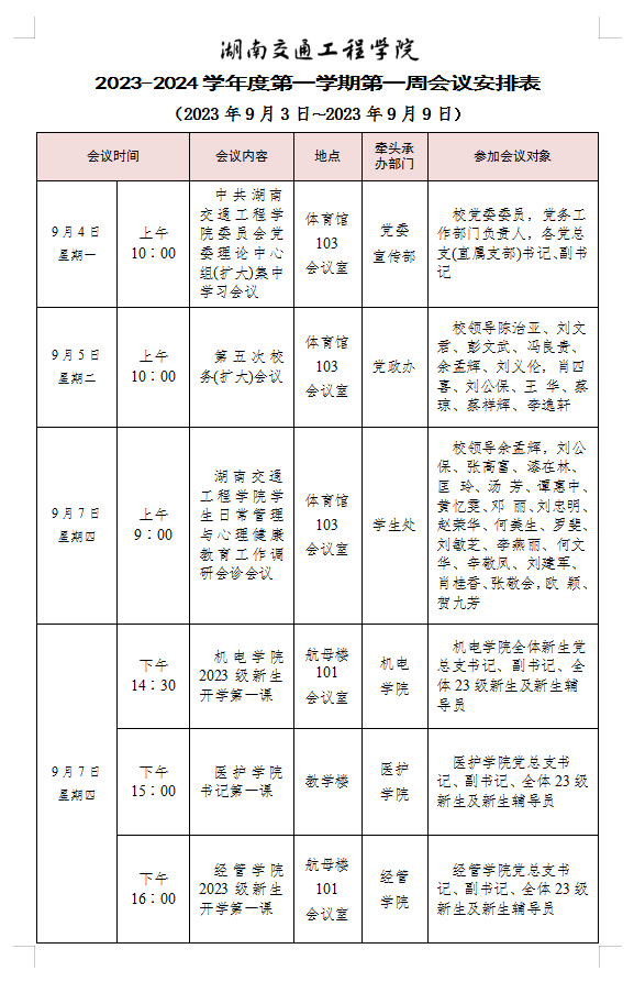 best365中国官方网站2023-2024学年度第一学期第一周会议安排表