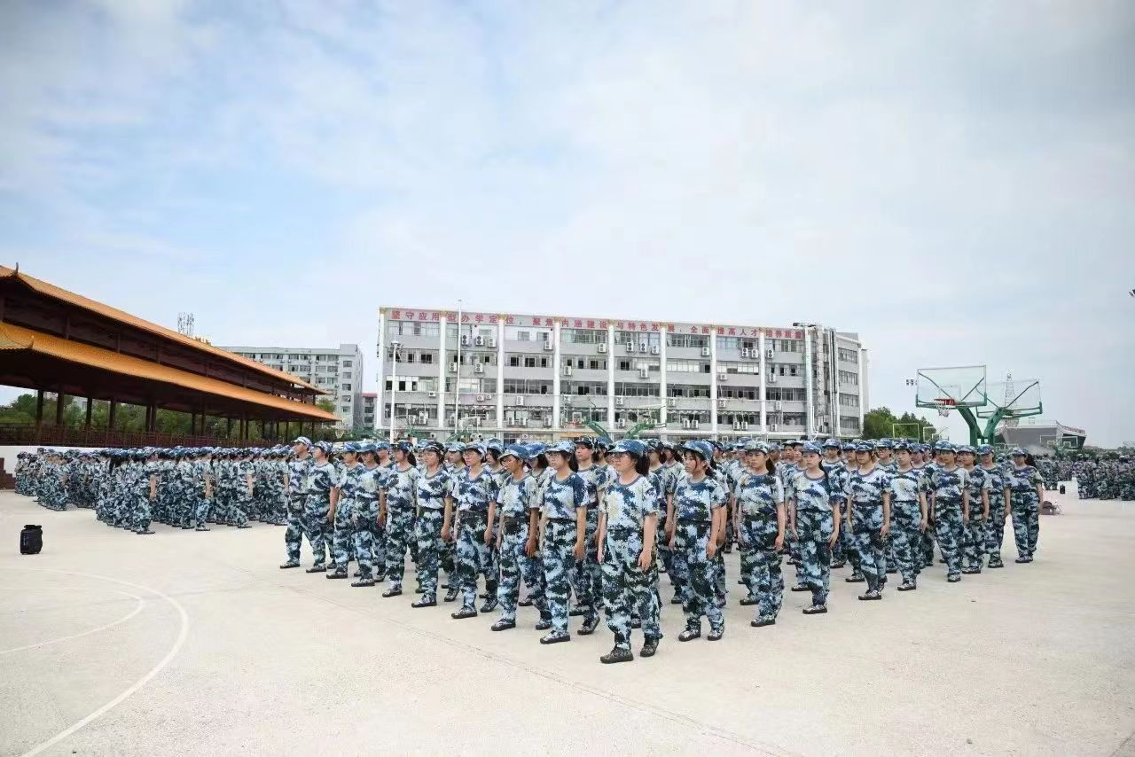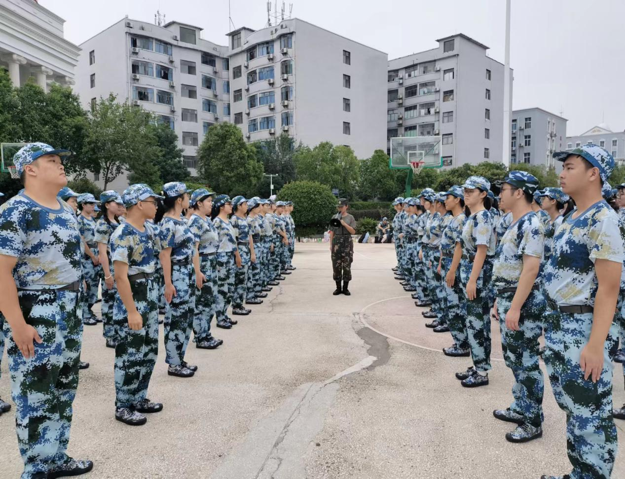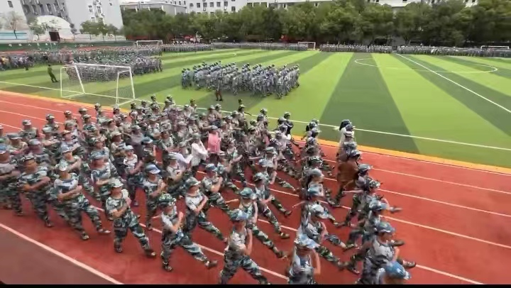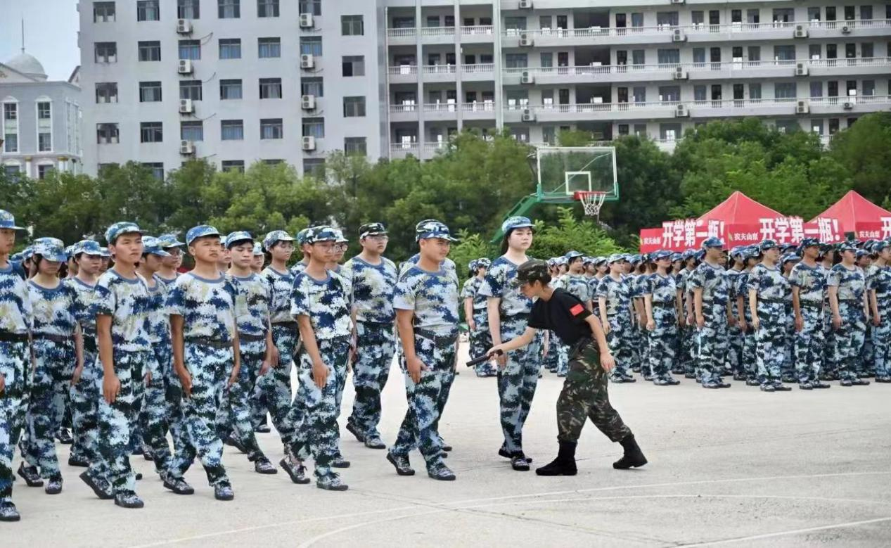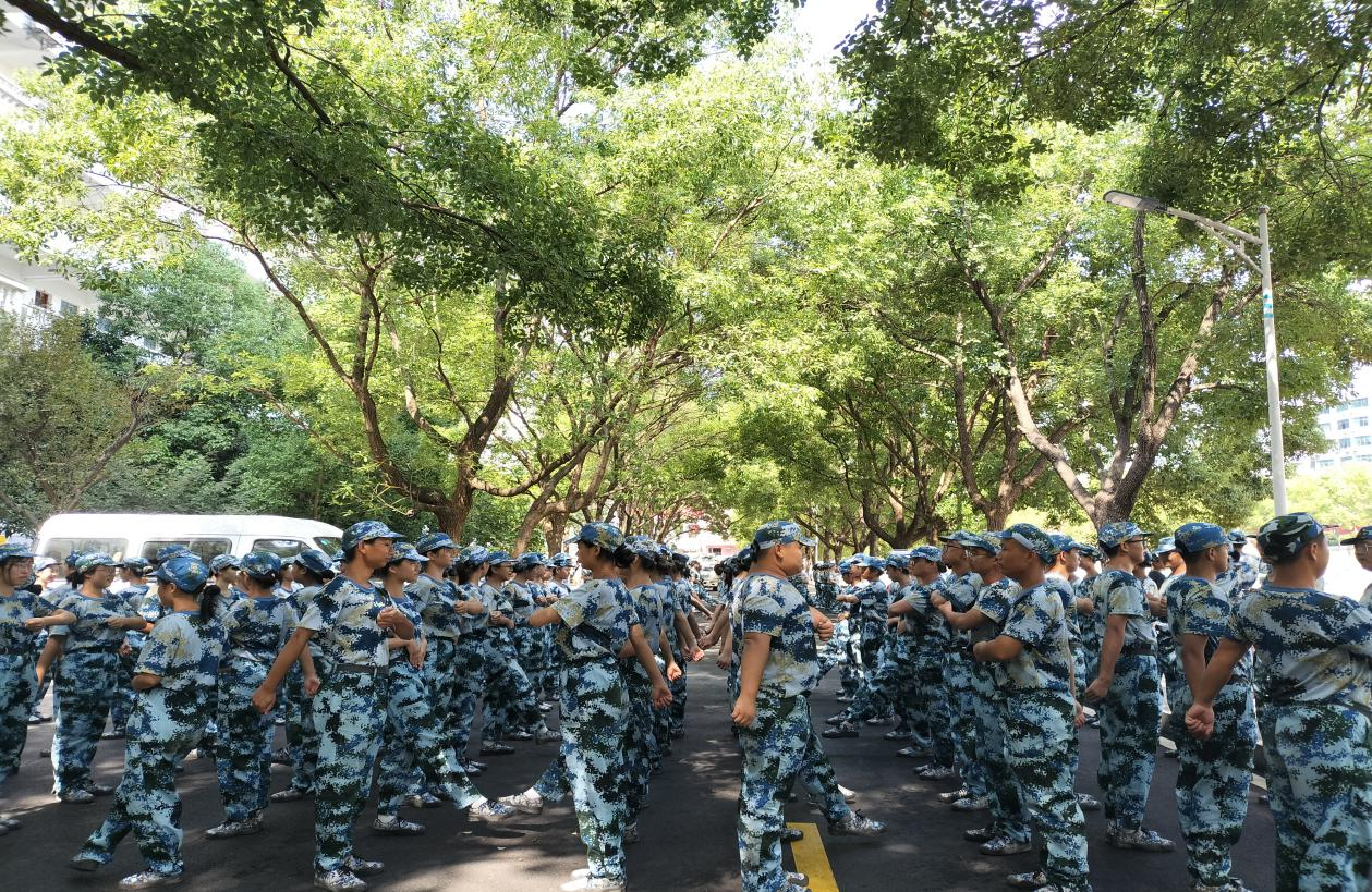 朝阳初升之时,同学们已穿戴整齐排队,嘹亮的口号声聚成河。他们目光如炬,英姿挺拔,每个人脸上都带着一份坚毅。青春少年时刻准备着,完成进入大学的第一个共同挑战。