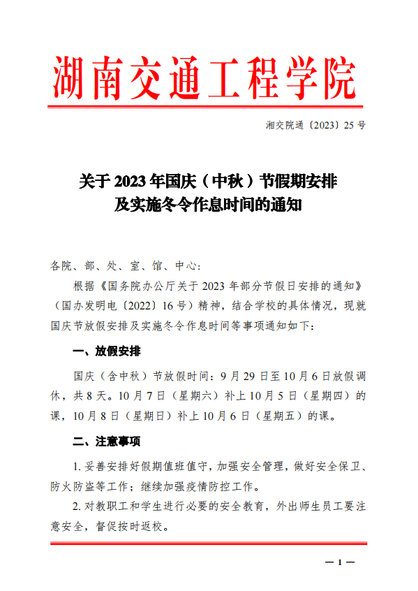 best365中国官方网站关于 2023 年国庆(中秋)节假期安排及实施冬令作息时间的通知