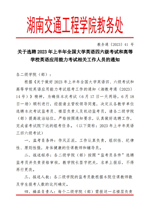 关于选聘2023年上半年全国大学英语四六级考试工作人员的通知