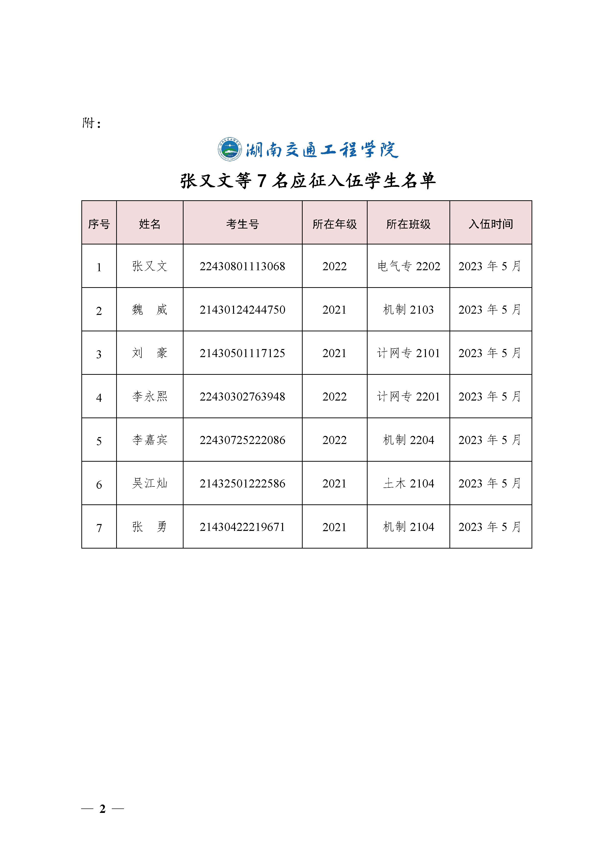 关于同意张又文等7名同学保留学籍的决定(湘交院学管〔2023〕22号)