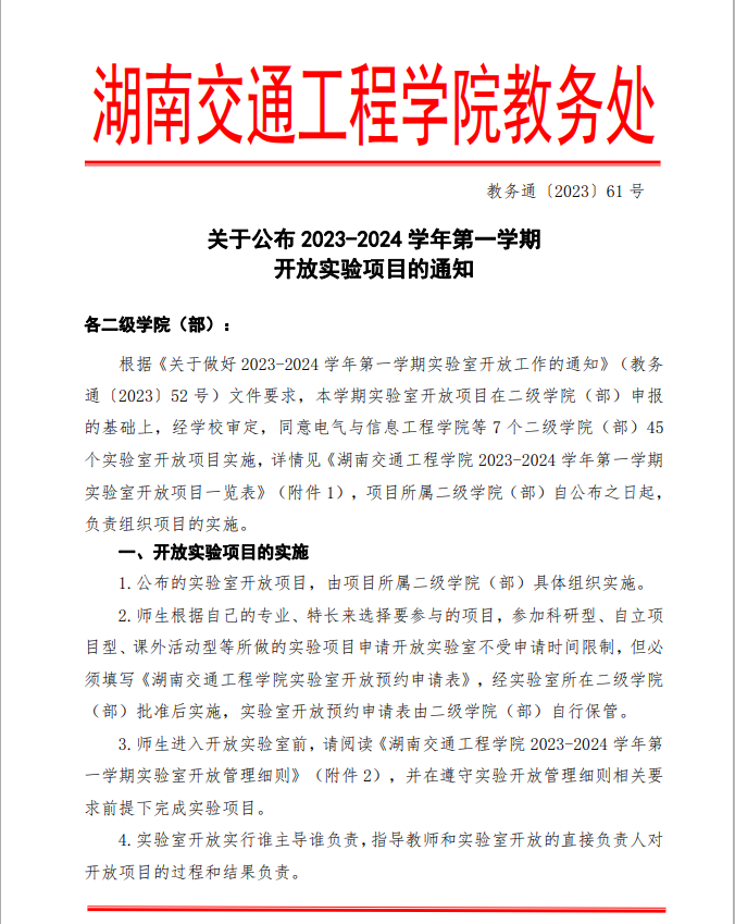 关于公布2023-2024学年第一学期实验室开放项目的通知