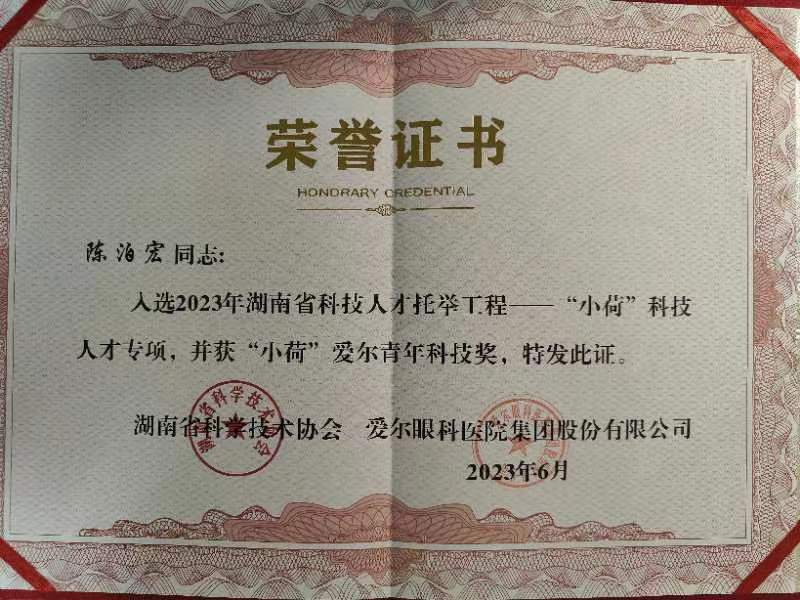 best365官网陈泊宏老师喜获湖南省科技人才托举工程项目支持