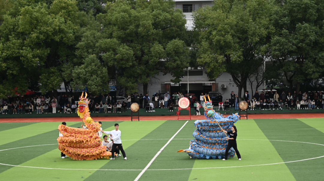 最后进行了文艺表演。舞龙表演舞者将龙的形态展现得淋漓尽致,美轮美奂,令人目不暇接;音乐和舞蹈的完美结合,呈现出舞龙表演的绝佳效果,同时也展现出中国文化艺术的深厚底蕴和完美元素。军体拳表演一声声铿锵有力的“嗨”,一个个刚劲勇武的拳腿,横踹侧踢、抱拳立定等动作行如流水,赢得运动场一片热烈喝彩。活力与动感融合,青春与激情舞动。啦啦操表演踏着激情飞扬的节拍,舞动青春洋溢的身姿,动感的音乐将场内气氛推向高潮。健美操表演伴随着优美的旋律,跳跃着生命的节拍,自信的笑容洋溢在表演者脸上,举手投足间都彰显着青春的活力与风采。