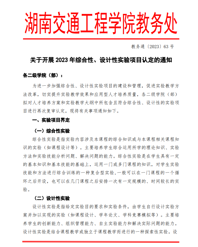 关于开展2023年综合性、设计性实验项目认定的通知及附件.rar