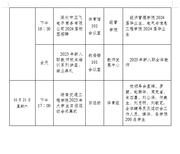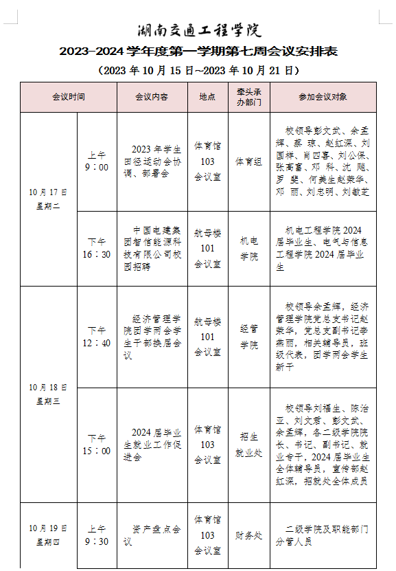 best365中国官方网站 2023-2024学年度第一学期第七周会议安排表