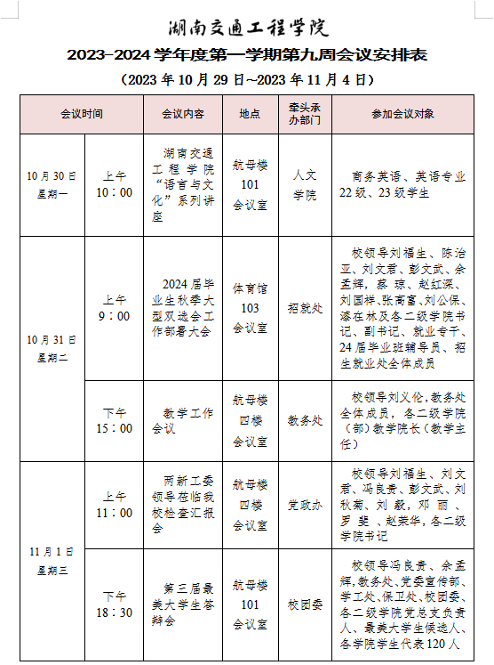 best365中国官方网站 2023-2024学年度第一学期第九周会议安排表