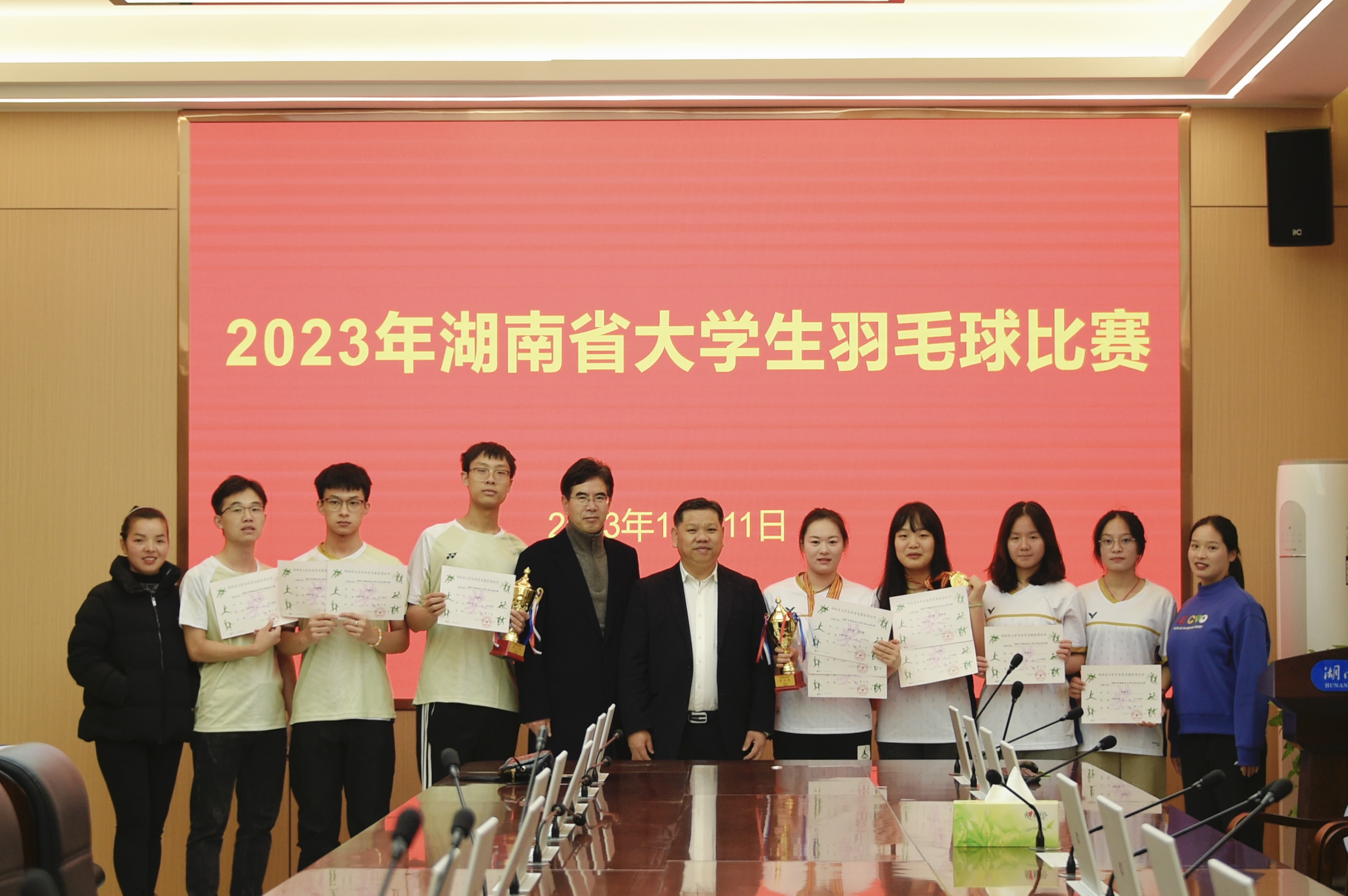 学校体育竞赛的相继获得好成绩,不仅能够增加同学们的荣誉感和获得感,还能够吸引更多的学生参加体育锻炼、提高运动技能、养成运动习惯、增强个人体质。为鼓励和表彰指导教师和参赛队员,常务副校长彭文武、教务处长肖四喜特与他们合影留念。让我们为羽毛球队获奖喝彩,为指导教师鼓掌,祝best365官网学子在未来的比赛中创造更多更好的成绩。(一审:范睿庭  二审:李水华  三审:彭文武)