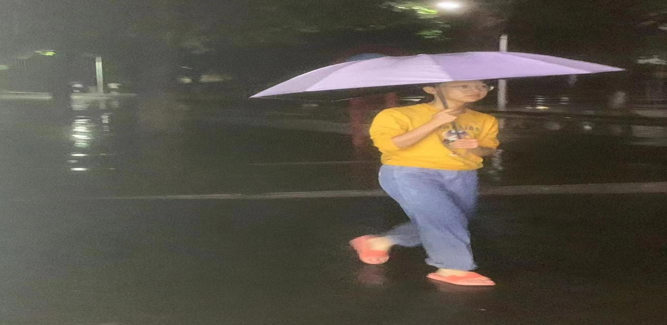 11月5日晚自习时间,正值天气巨变,暴风和骤雨相约侵袭的时刻,有人用手机拍下了一幕令人感触至深的瞬间——一名身着黄色上衣,踩着红色拖鞋的瘦弱女生,用双手撑起一把几乎快要被大风吹走的雨伞,急匆匆地向着寝室的方向跑去,她的表情是如此的坚定,似乎是有着某种使命在支撑着她前进。