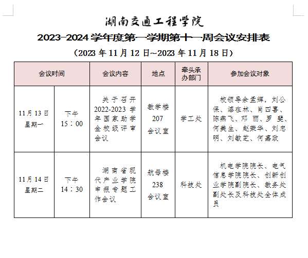 best365中国官方网站 2023-2024学年度第一学期第十一周会议安排表
