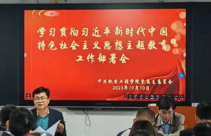 为深入学习贯彻习近平总书记关于主题教育的重要论述和指示批示精神,推进学习贯彻习近平新时代中国特色社会主义思想主题教育持续走深走实,于2023年10月10日,机电工程学院党总支在机电楼404教室组织全院师生党员、预备党员召开“学习贯彻习近平新时代中国特色社会主义思想主题教育工作部署会”,此次会议由机电工程学院党总支书记罗斐教授主持并讲话。