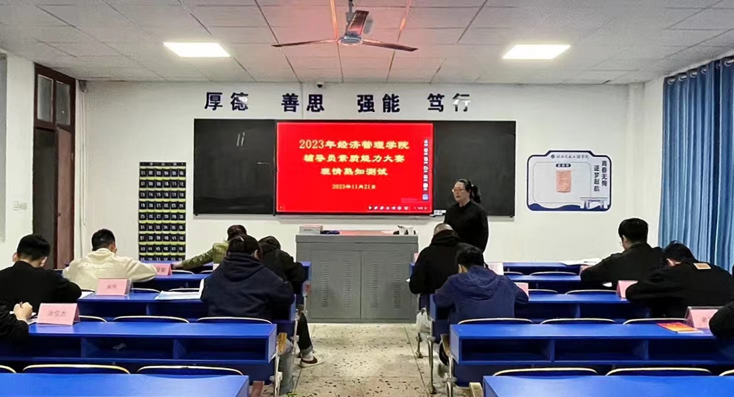 本网讯(通讯员 赵孝锶)为不断提升经济管理学院辅导员的理论水平、职业能力和专业素养,推动学生工作高质量发展。11月21日晚上19点,经济管理学院在教学楼404教室开展辅导员素质能力大赛之“班情熟知”测试。本次测试经济管理学院全体辅导员参考,学院党总支书记赵荣华、副书记李燕丽现场督考。