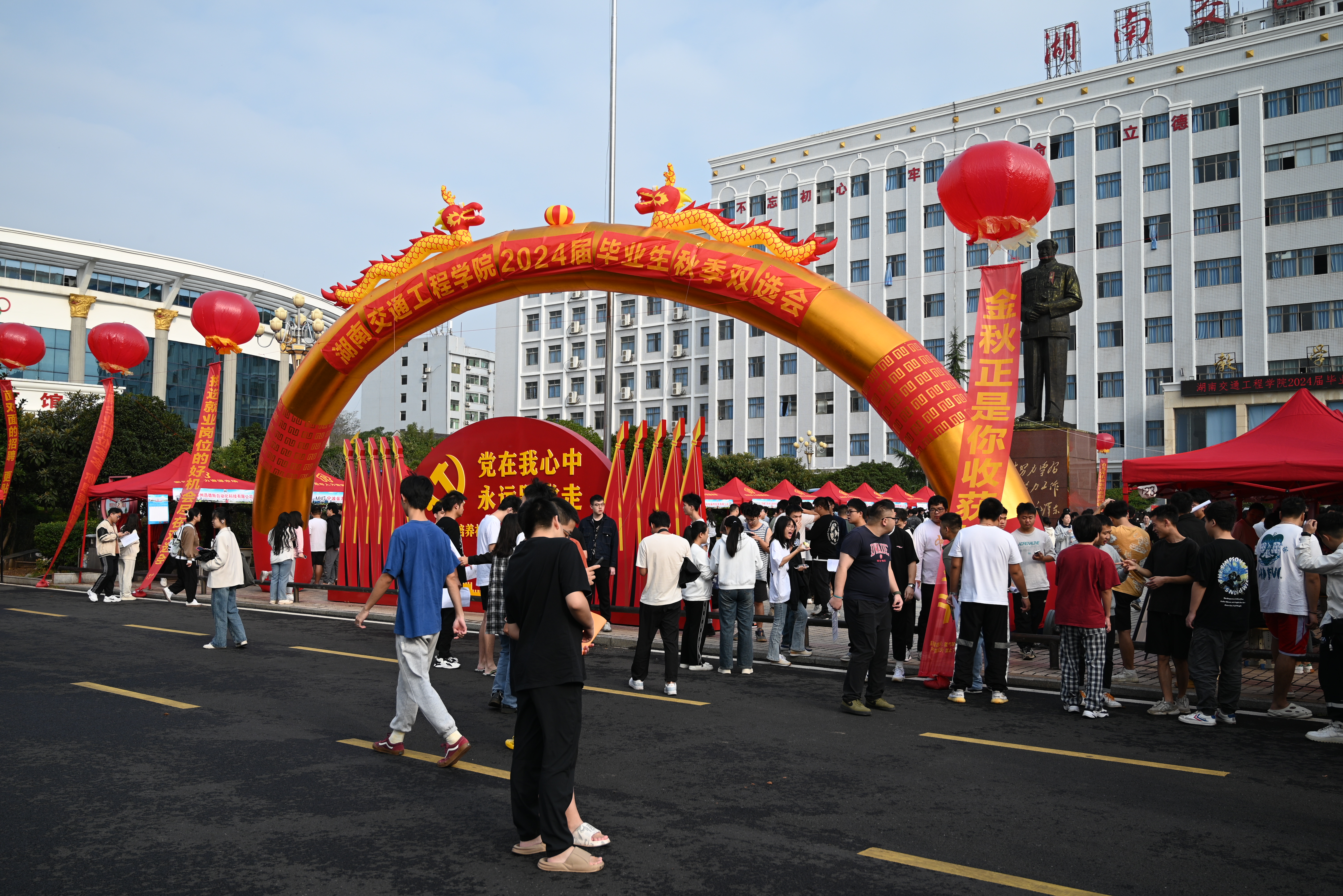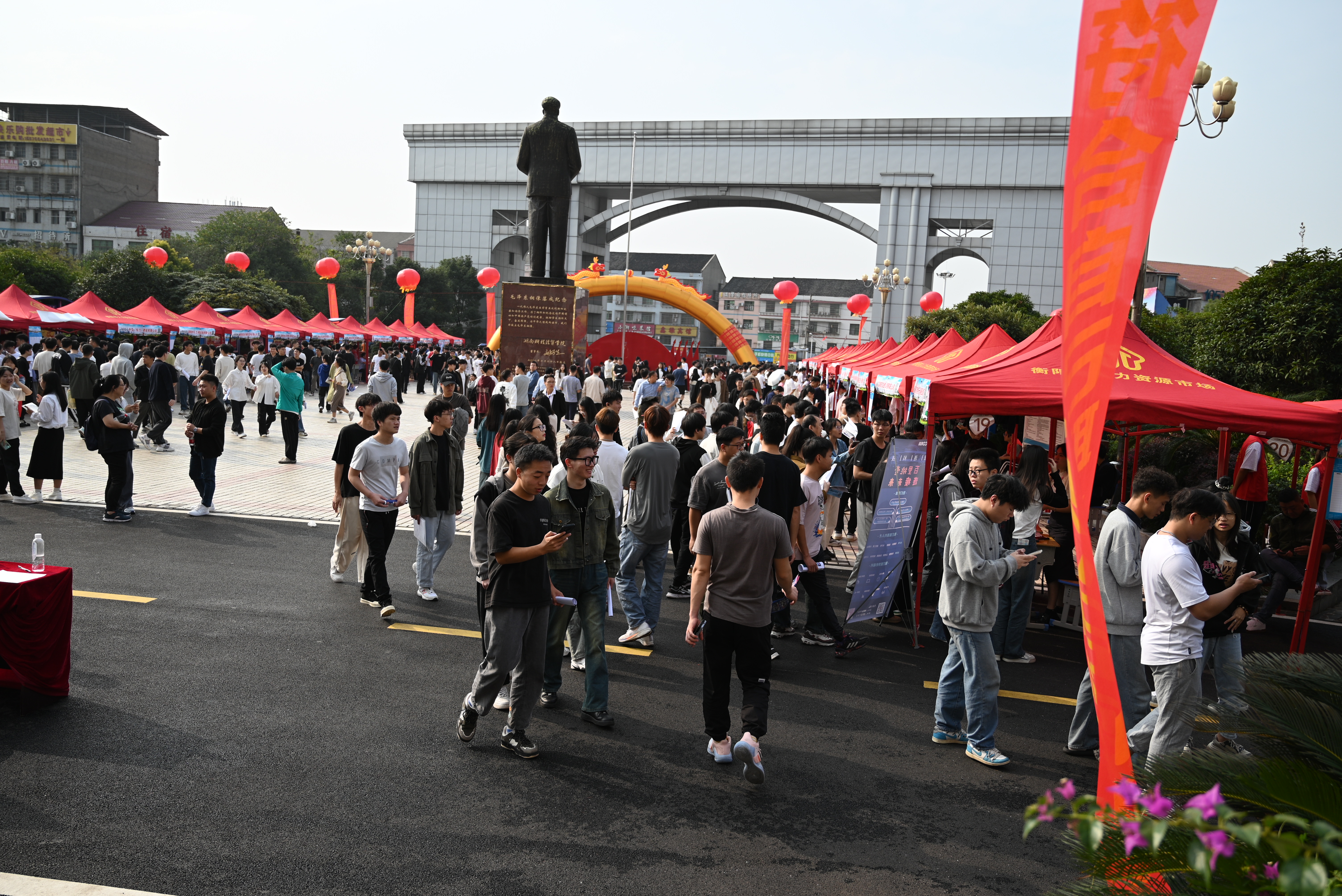 本网讯(通讯员 赵红深 摄影 大学生记者团)自古逢秋悲寂寥, 我言秋日胜春朝。11月4日,阳光灿烂,秋高气爽,毛泽东铜像文化广场人头攒动,气氛热烈,best365官网2024届毕业生秋季就业双选会在此举行。上海坤朋医药、宁波金海电子、太平洋四建、新疆特变电工、杭州轴承、广东海大、深圳壹连科技等100余家用人单位来校揽才,累计为毕业生提供岗位10000余个,专业需求覆盖best365官网所有专业;best365官网4300余名毕业生应聘,近6000在校二年级三年级学生观摩,共计10000余学生参加此次招聘活动,形成了万余岗位万余人参会的“双万”场面,劲爆劲憾!