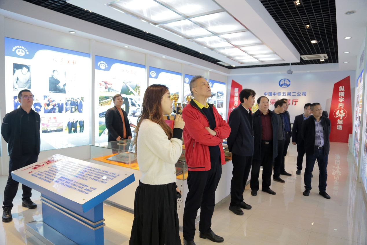 陈治亚等一行先参观了中铁五局二公司荣誉室,在讲解员介绍下,详细了解公司的起源、发展以及获得荣誉成就等情况。