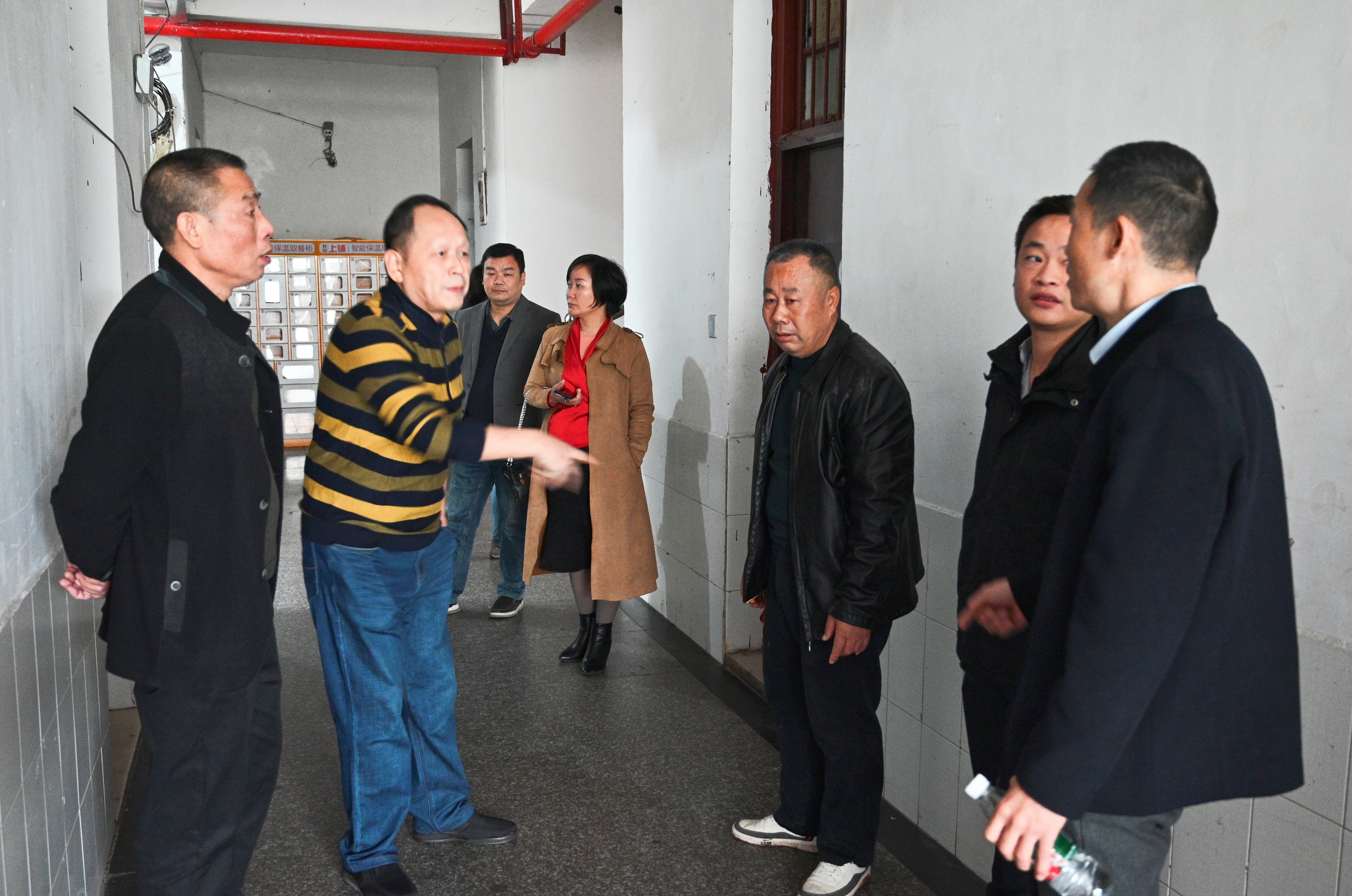 本网讯(通讯员 摄影 赵红深)在深入开展学习贯彻习近平新时代中国特色社会主义思想主题教育,全面落实立德树人根本任务,“立足岗位做贡献、敬业奉献促复评”活动中,学校推进“一站式”学生社区综合管理模式建设工作。11月份以来,在学工处、校团委带领下,党委书记刘文君、副校长余孟辉,党政办、宣传部、后勤处、保卫处、招生就业处负责人,各二级学院党总支书记走访了“一站式”学生社区。