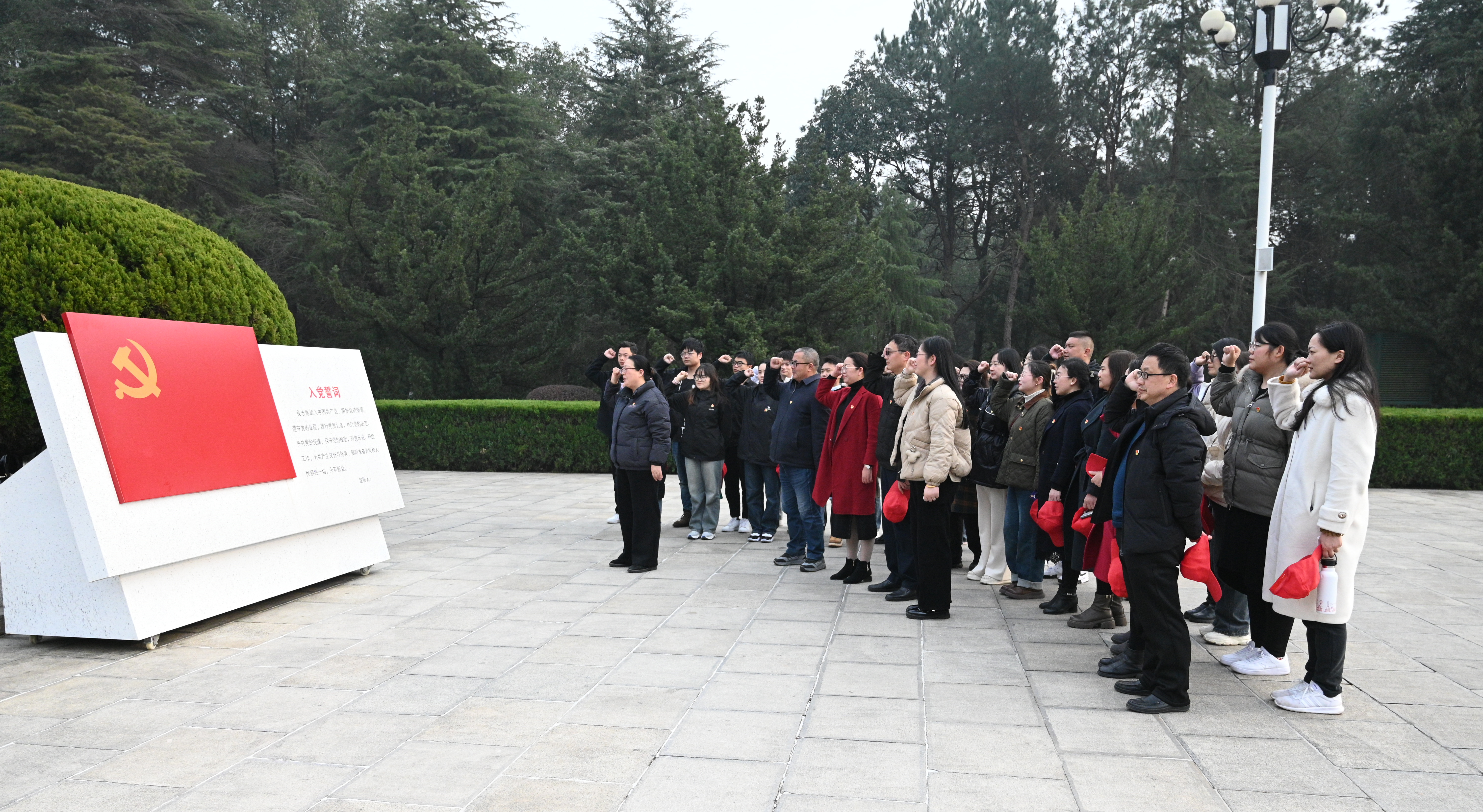 在刘少奇铜像广场,赵荣华带领大家庄严地重温入党誓词,永葆入党初心。接着大家整齐列队,怀着无比崇敬的心情向刘少奇主席铜像敬献花篮,深深鞠躬致敬,环绕铜像一周,表达深切的敬仰缅怀之情。