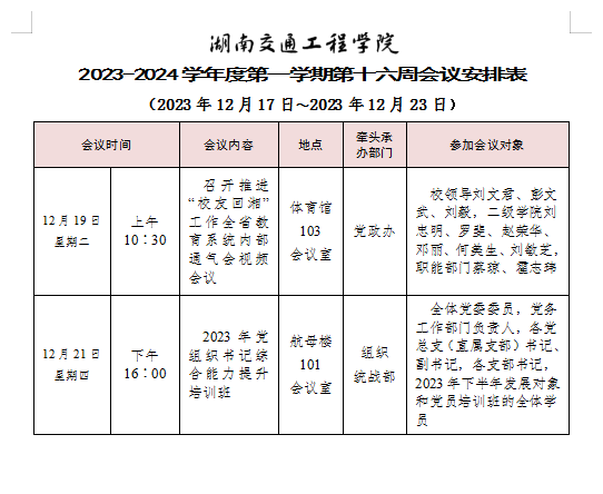 best365中国官方网站2023-2024学年度第一学期第十六周会议安排表